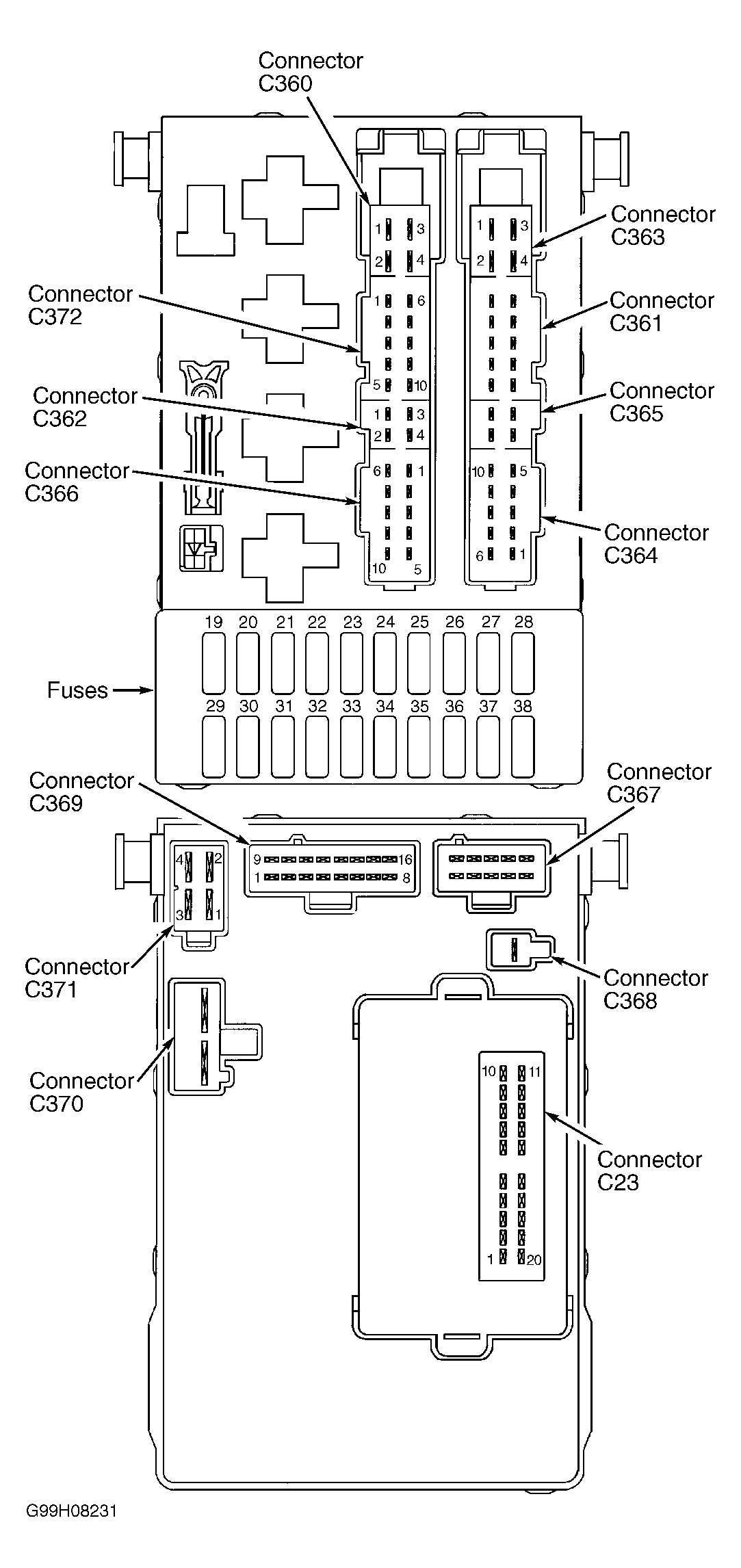 - Close all doors and ensure interior lamps are off. Disconnect central locking module 13-pin connector C451a (located behind glove box). Connect a fused jumper wire between ground and central locking module 13-pin harness connector terminal No. 3 (White wire). If interior lamps does not illuminate, go to next step. If interior lamps illuminate, replace central locking module and retest system operation. See CENTRAL LOCKING MODULE