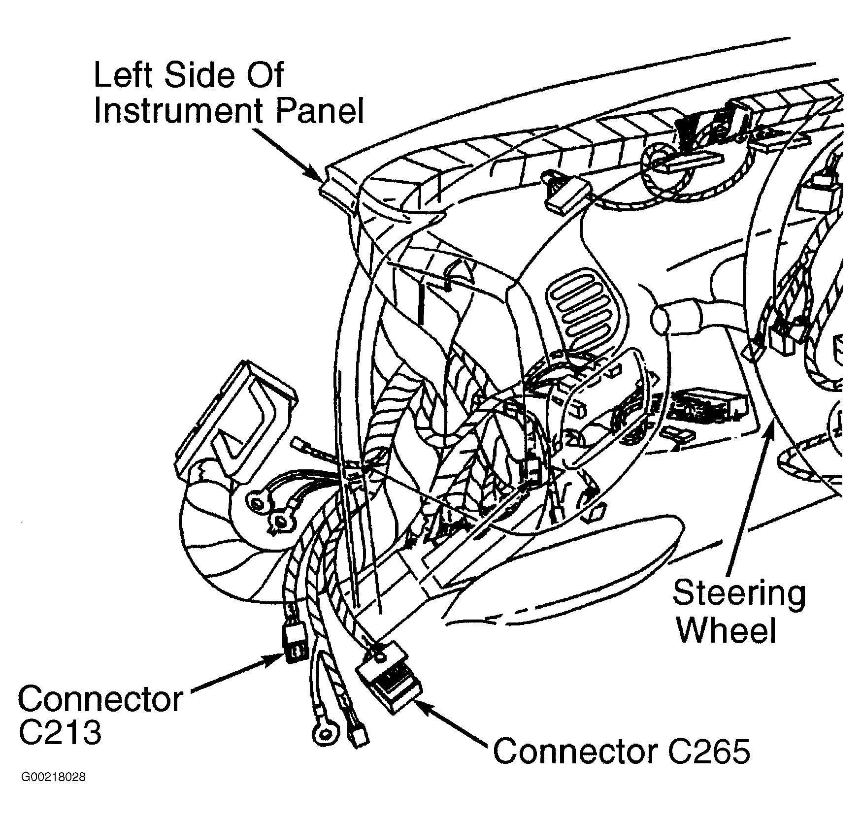 3. Disconnect in-line 16-pin harness connector C213. See Fig 2. Inspect both halves of harness connector for loose, damaged or corroded terminals. If problem does not exist with harness connector, go to next step. If problem exists with harness connector, repair as necessary.