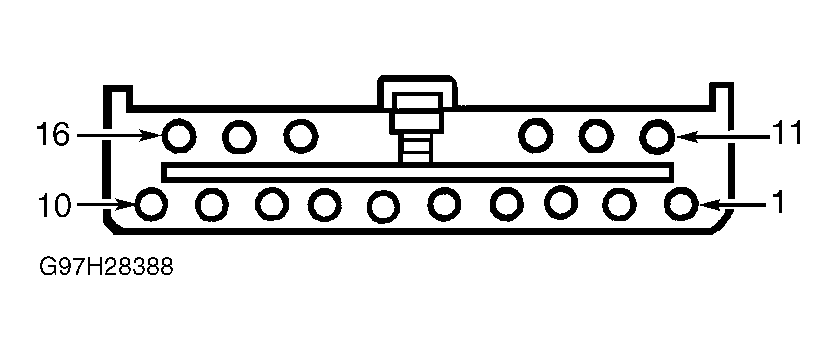 - Turn ignition switch to LOCK position. Install fuse No. 13 (15-amp). Disconnect LCM harness connector C2027. Turn ignition switch to RUN position. Measure voltage at terminal No. 9 (Red/Yellow wire) at LCM 16-pin connector C2027. See Fig 1