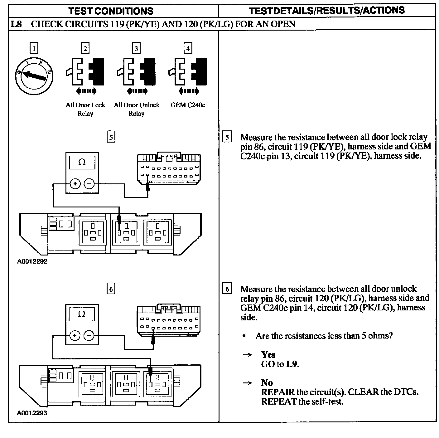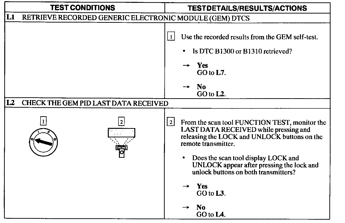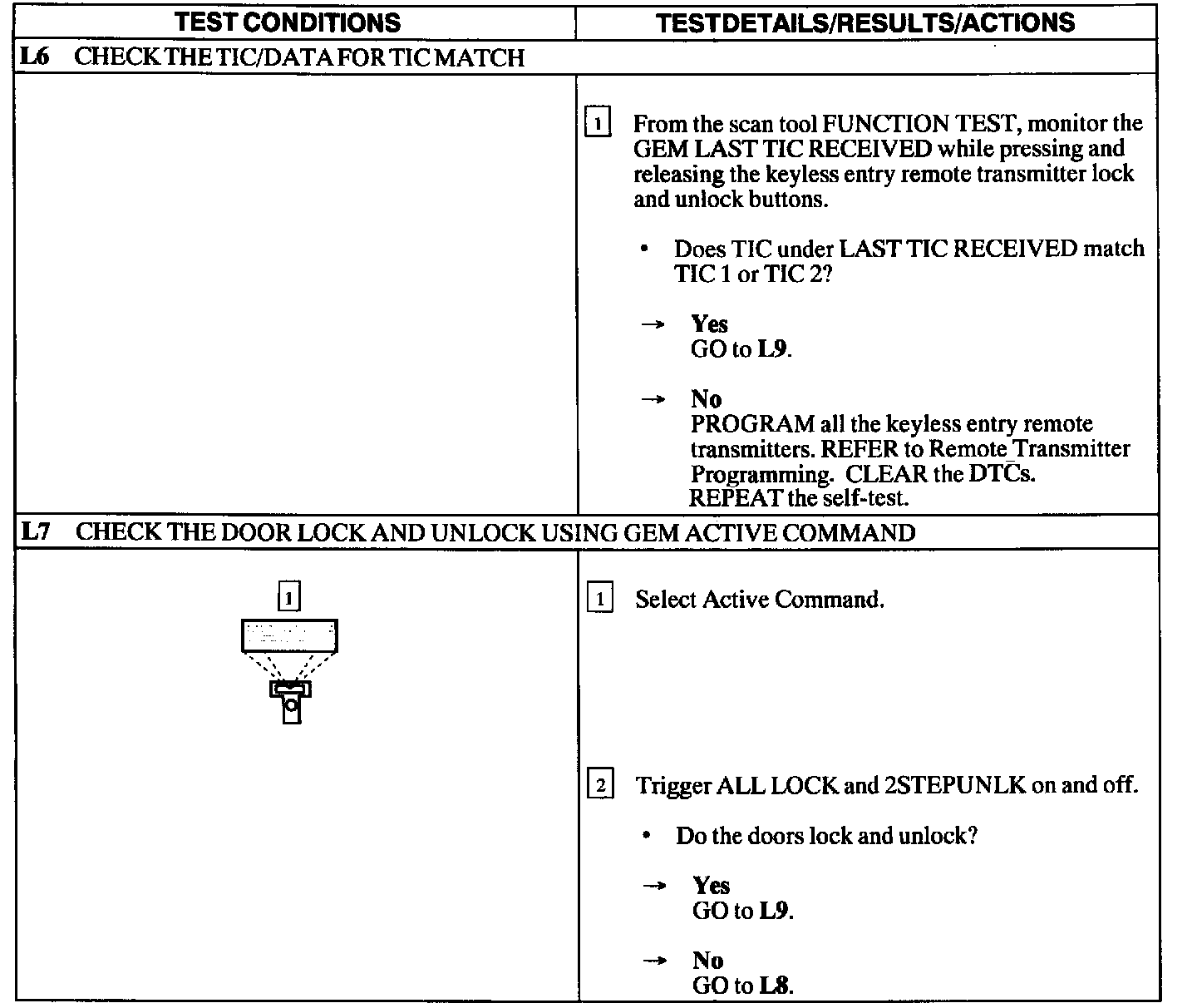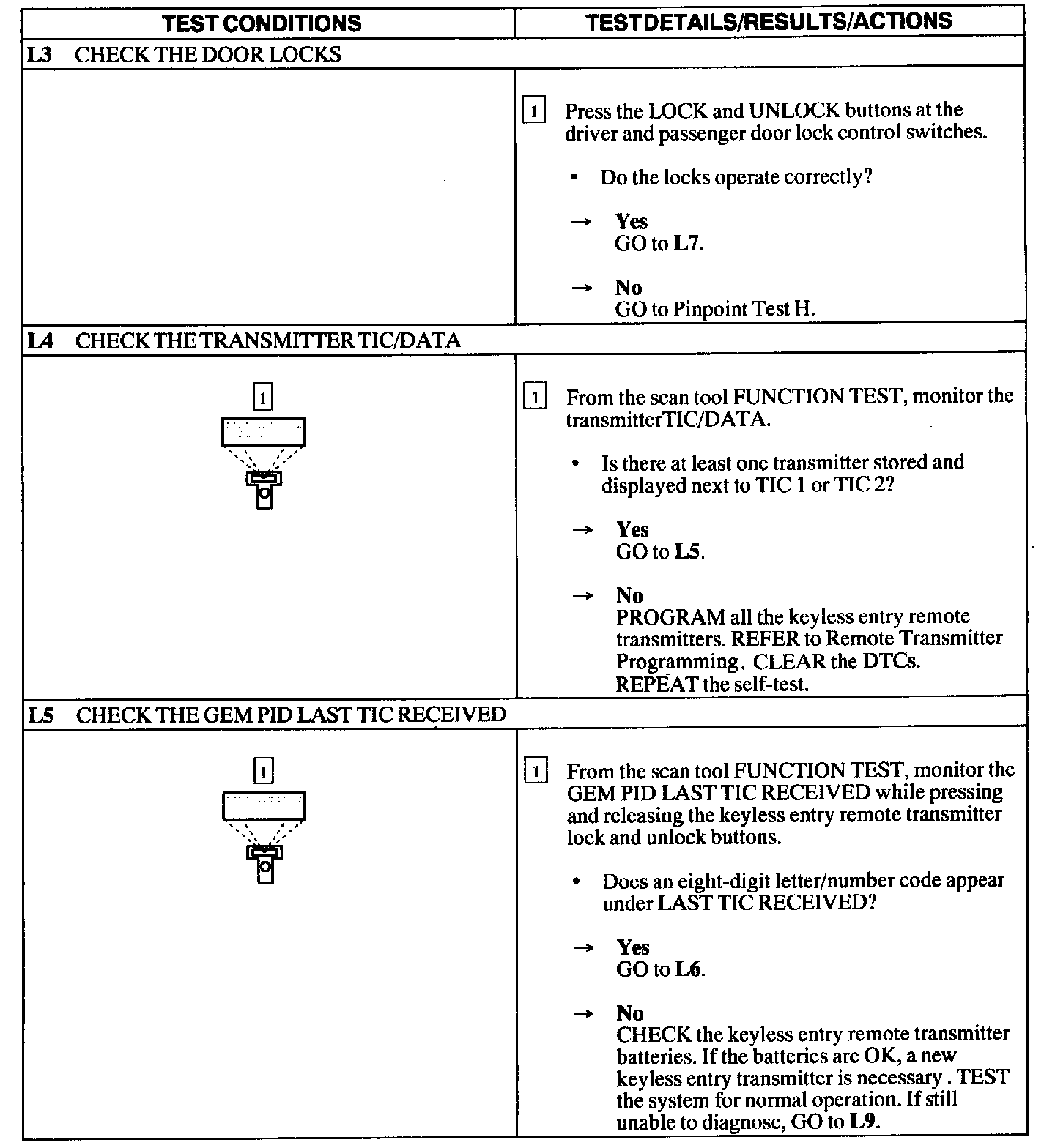 Test L: Doors Do Not Lock/Unlock Using the Keyless Entry Remote Transmitter