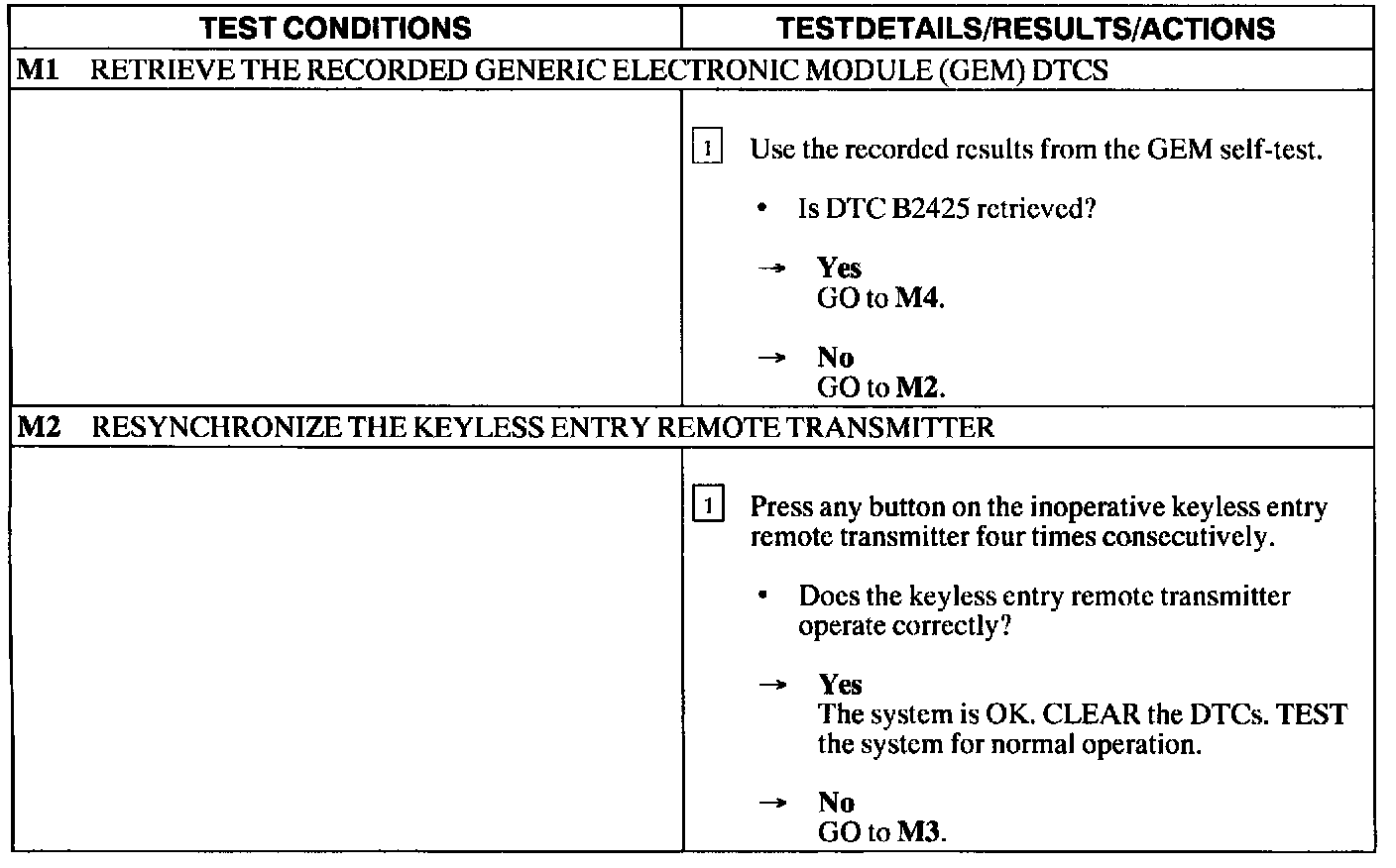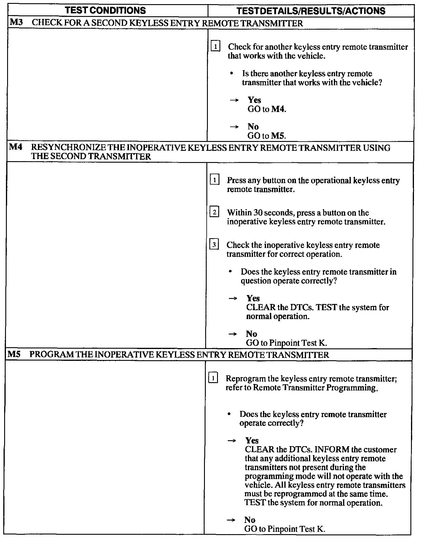 Test M: Keyless Entry Remote Transmitter Out of Synchronization