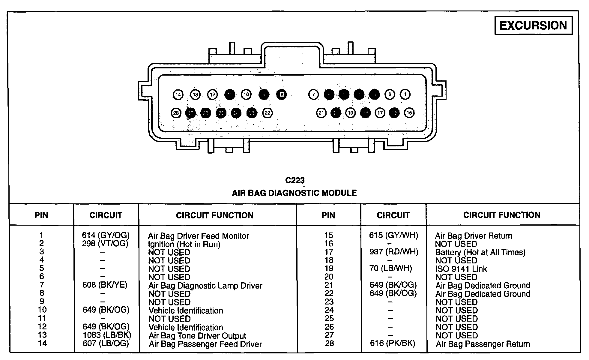 Home >> Ford >> 2000 >> Excursion 2WD V10-6.8L VIN S >> Repair and Diagnosis >> Diagrams >> Connector Views >> Air Bag Control Module