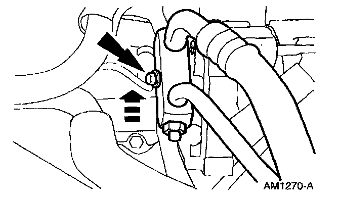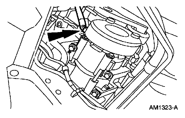 6. The lower rear bolt must be removed with the A/C compressor.