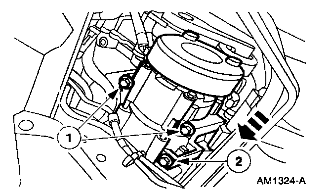 2. Install the lower rear bolt into the A/C compressor.