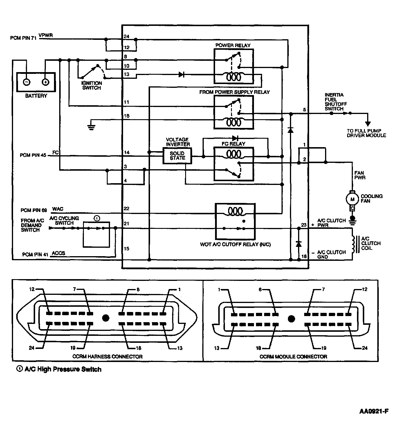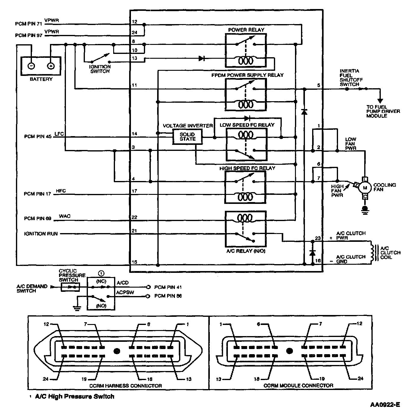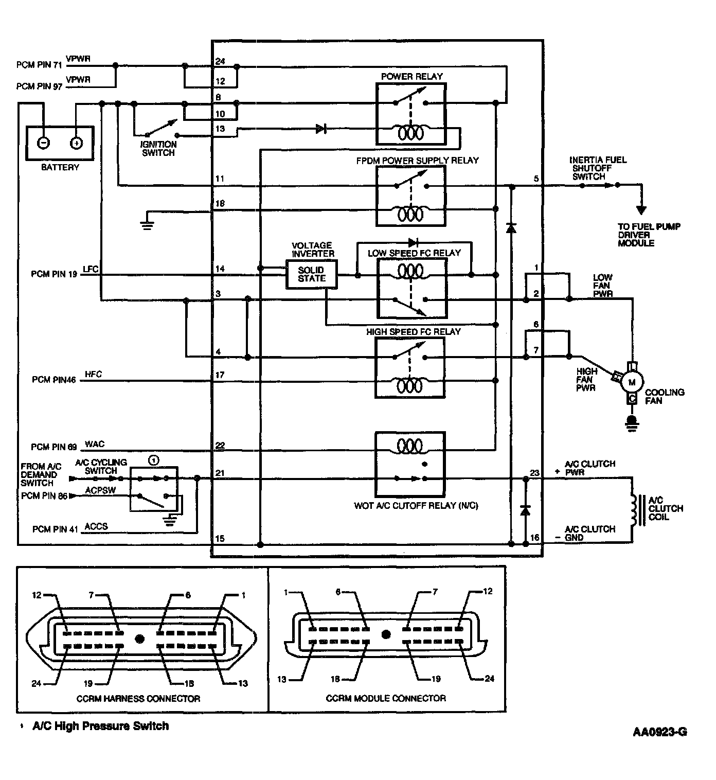 - Harness Circuits: B+, FC, LFC, HFC, ACCS, WAC, VPWR (TO CCRM), A/C Clutch PWR, (Low/High) Fan PWR,GND