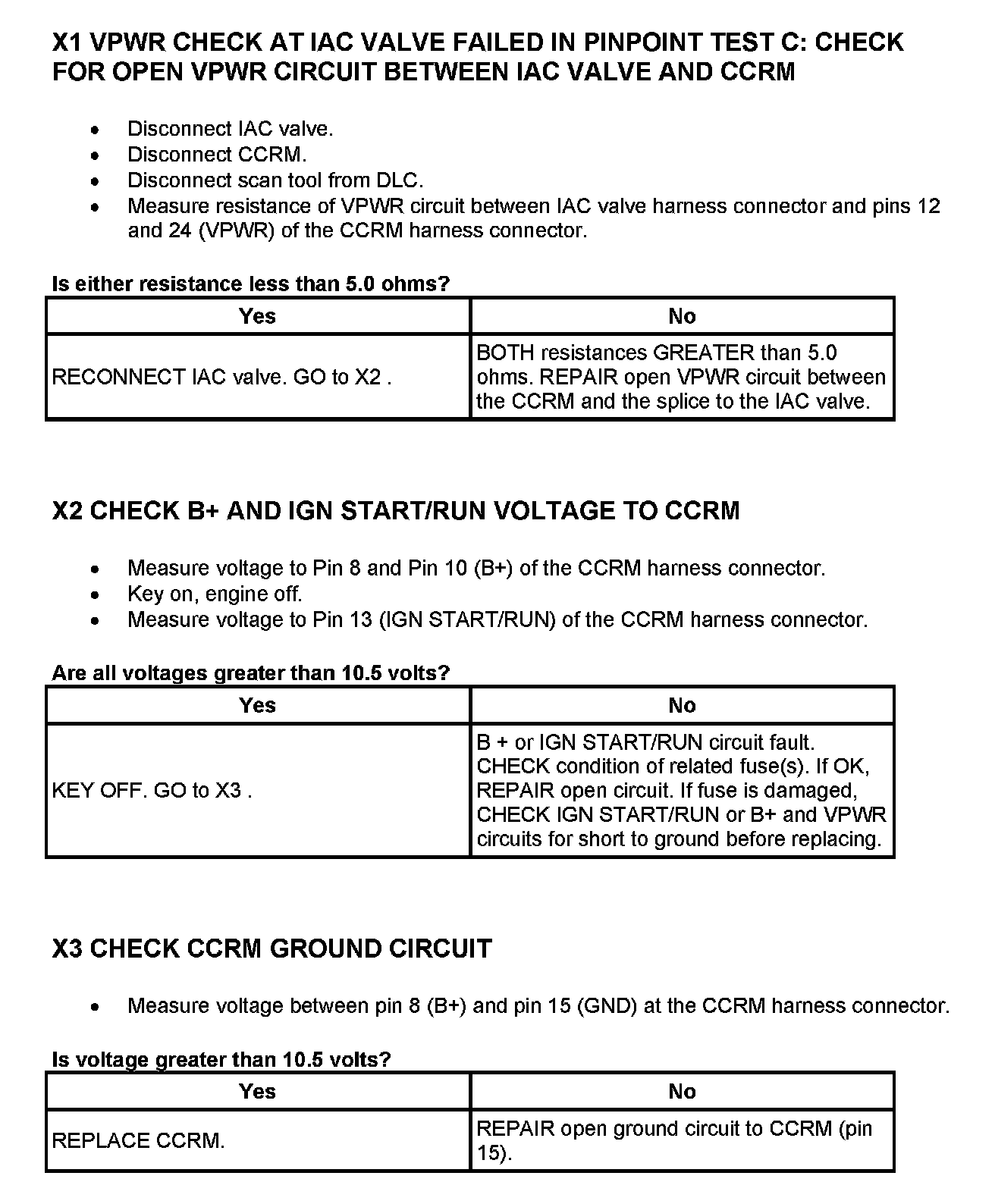 Home >> Ford >> 2000 >> Excursion 2WD V10-6.8L VIN S >> Repair and Diagnosis >> Powertrain Management >> Computers and Control Systems >> Testing and Inspection >> Pinpoint Tests >> Test X: Constant Control Relay Module (CCRM)