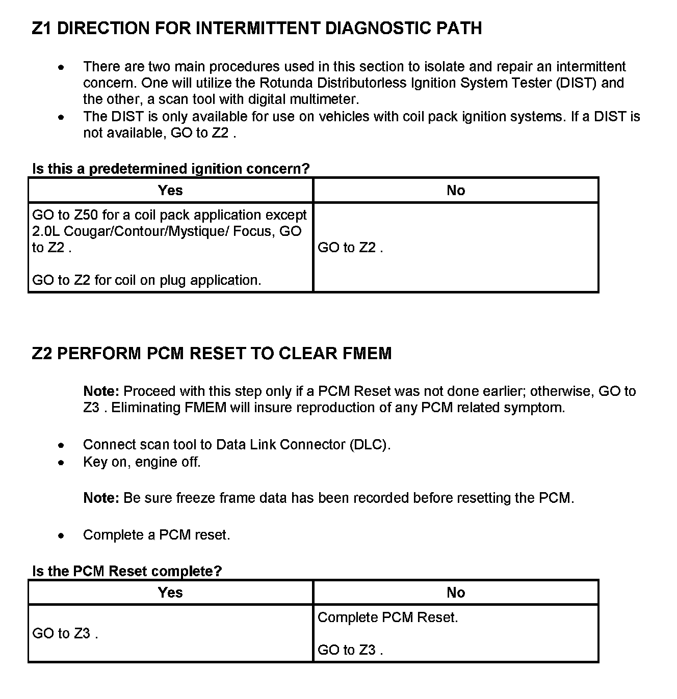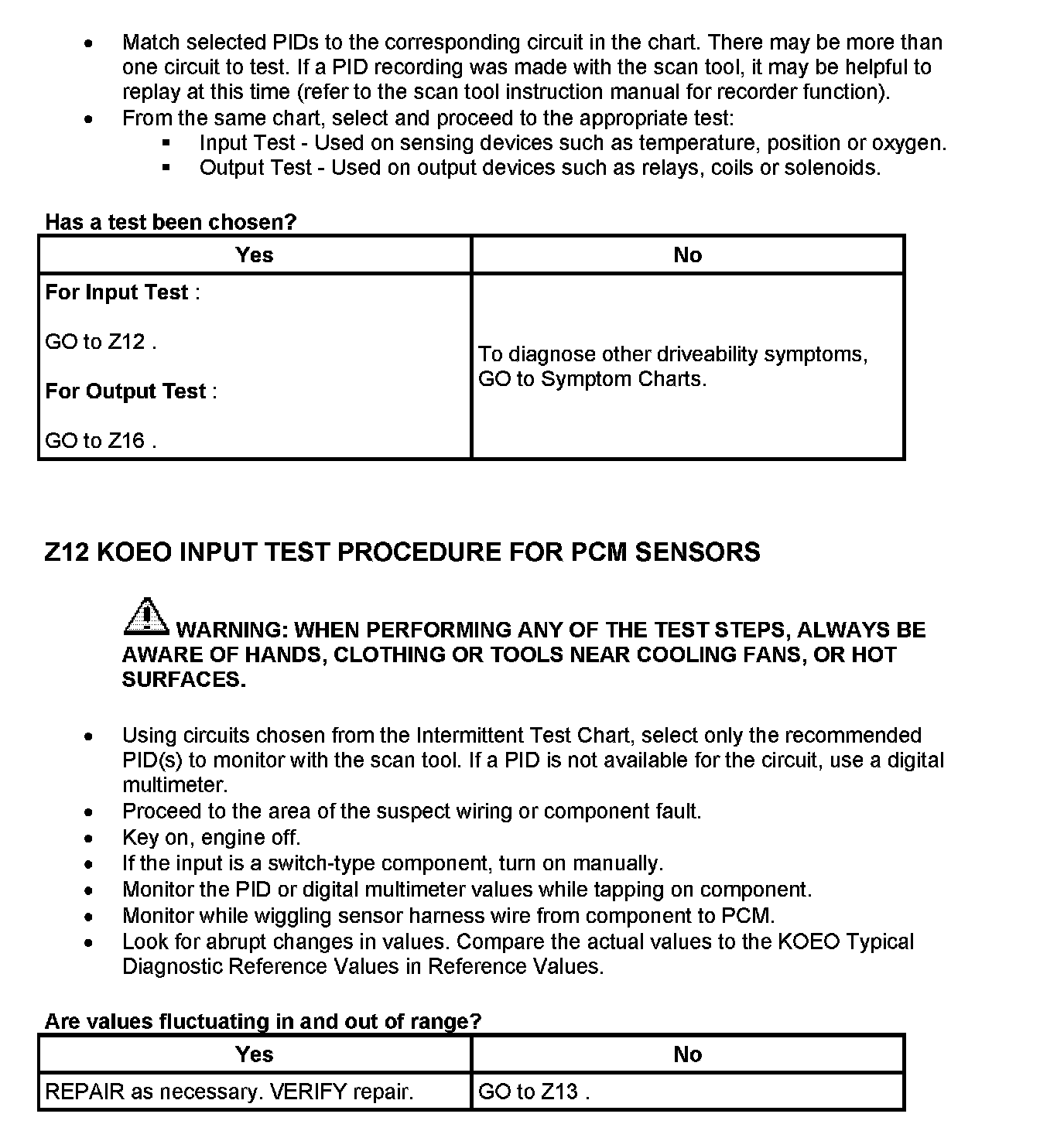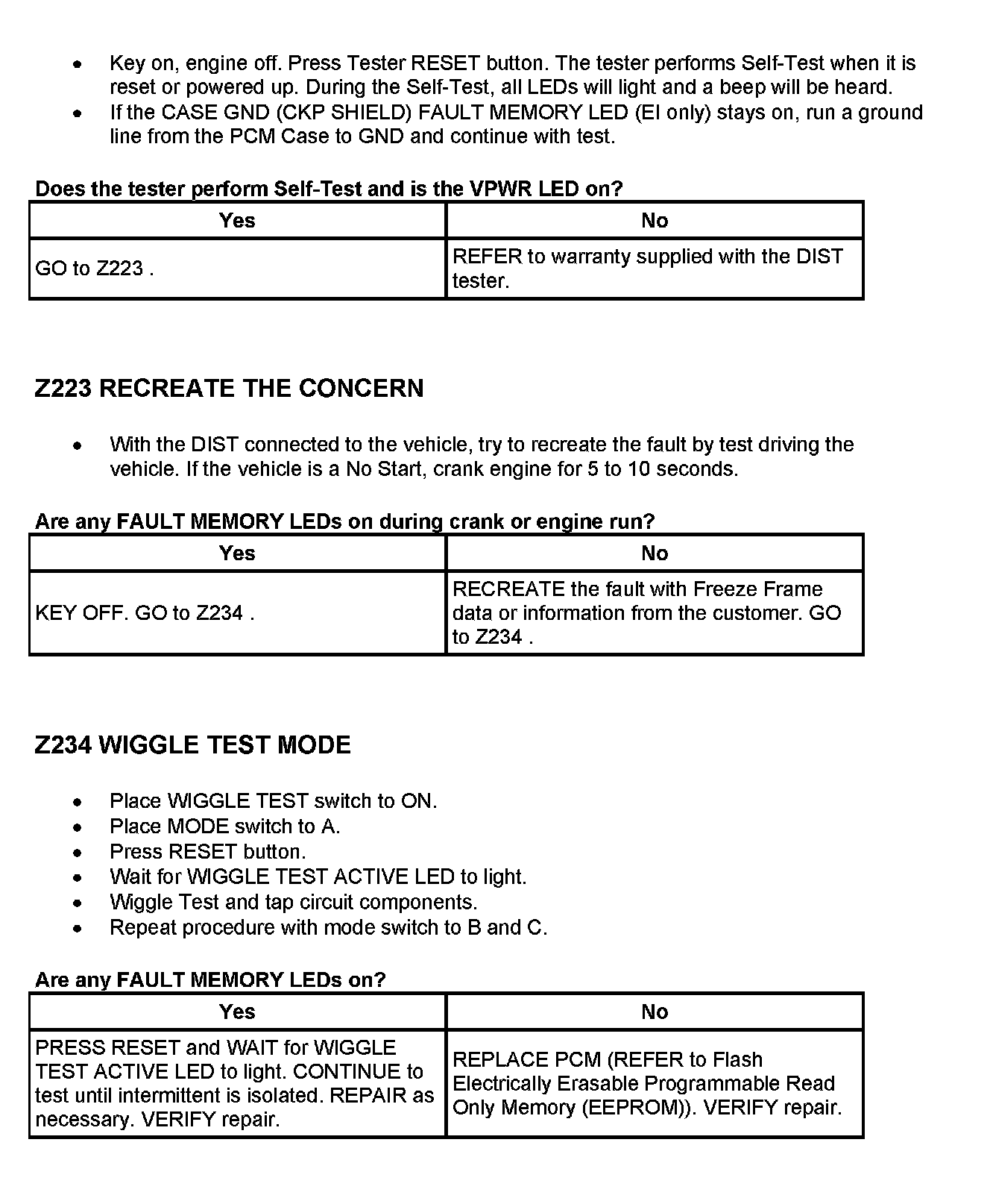 This chart is used to determine which test to run for the suspect circuit. Corresponding PIDs to each circuit are listed. Some circuits do not have an associated PID and will be measured with a digital multimeter. If the vehicle has a coil pack system with no start, perform the ignition test with the distributorless ignition system tester. Do not use the DIST for coil on plug applications.