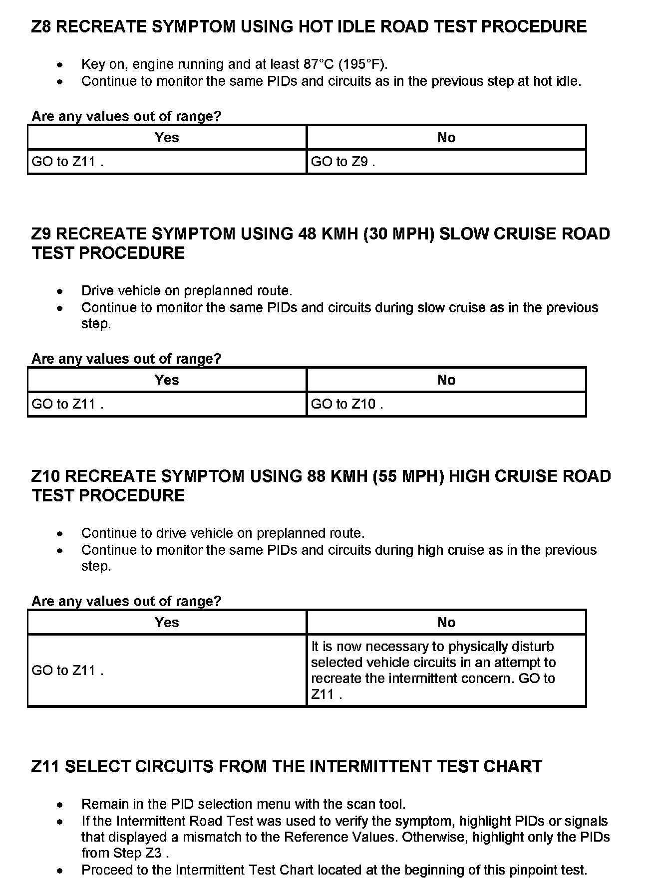 This Pinpoint Test is intended to diagnose and isolate intermittent concerns for the following: