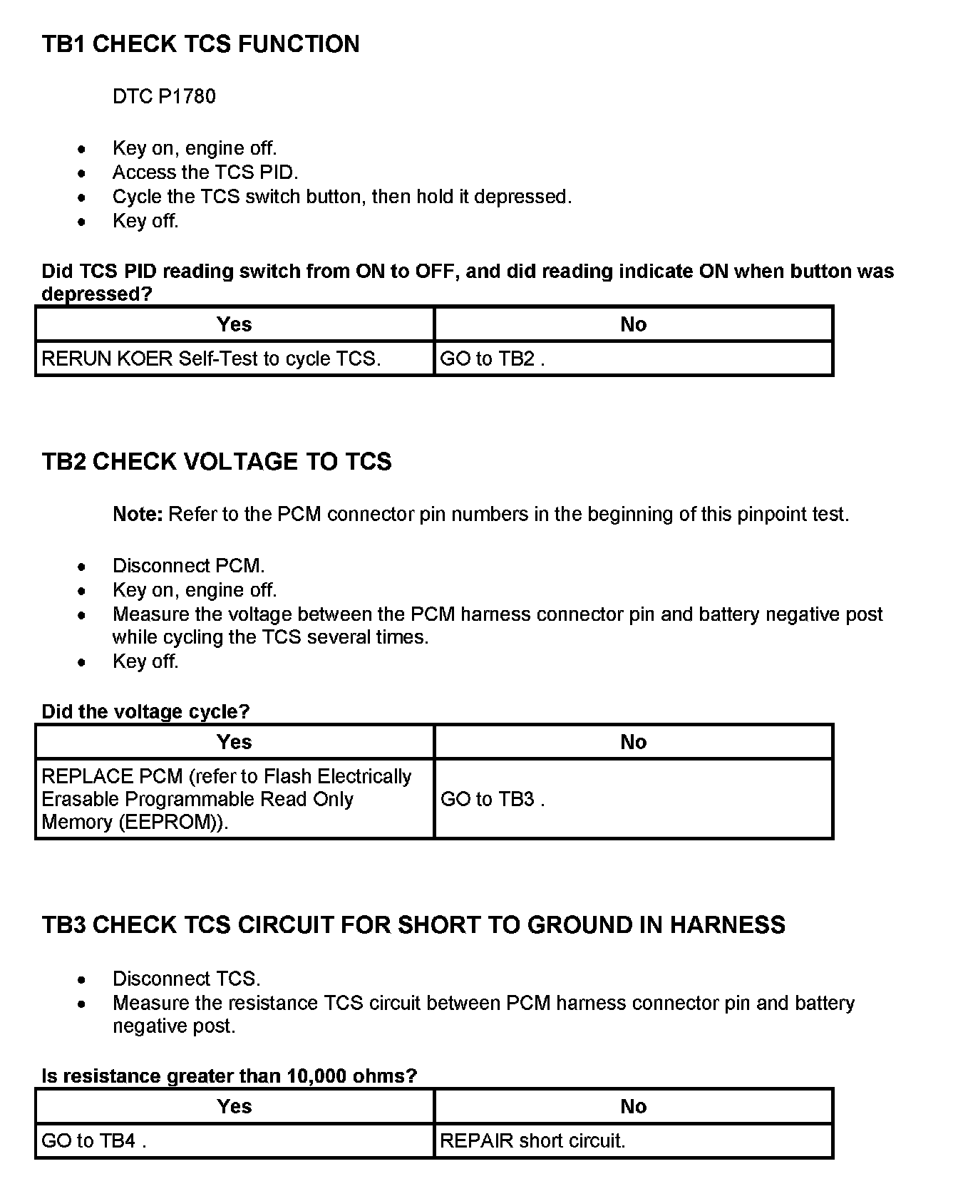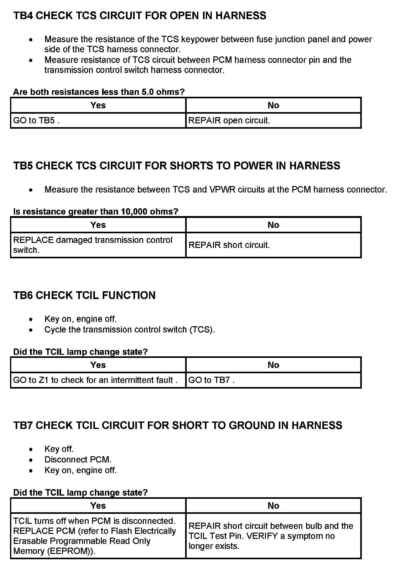 Home >> Ford >> 2000 >> Excursion 2WD V10-6.8L VIN S >> Repair and Diagnosis >> Powertrain Management >> Computers and Control Systems >> Testing and Inspection >> Pinpoint Tests >> Tests TB: Trans Control Switch/Trans Control Indicator Lamp