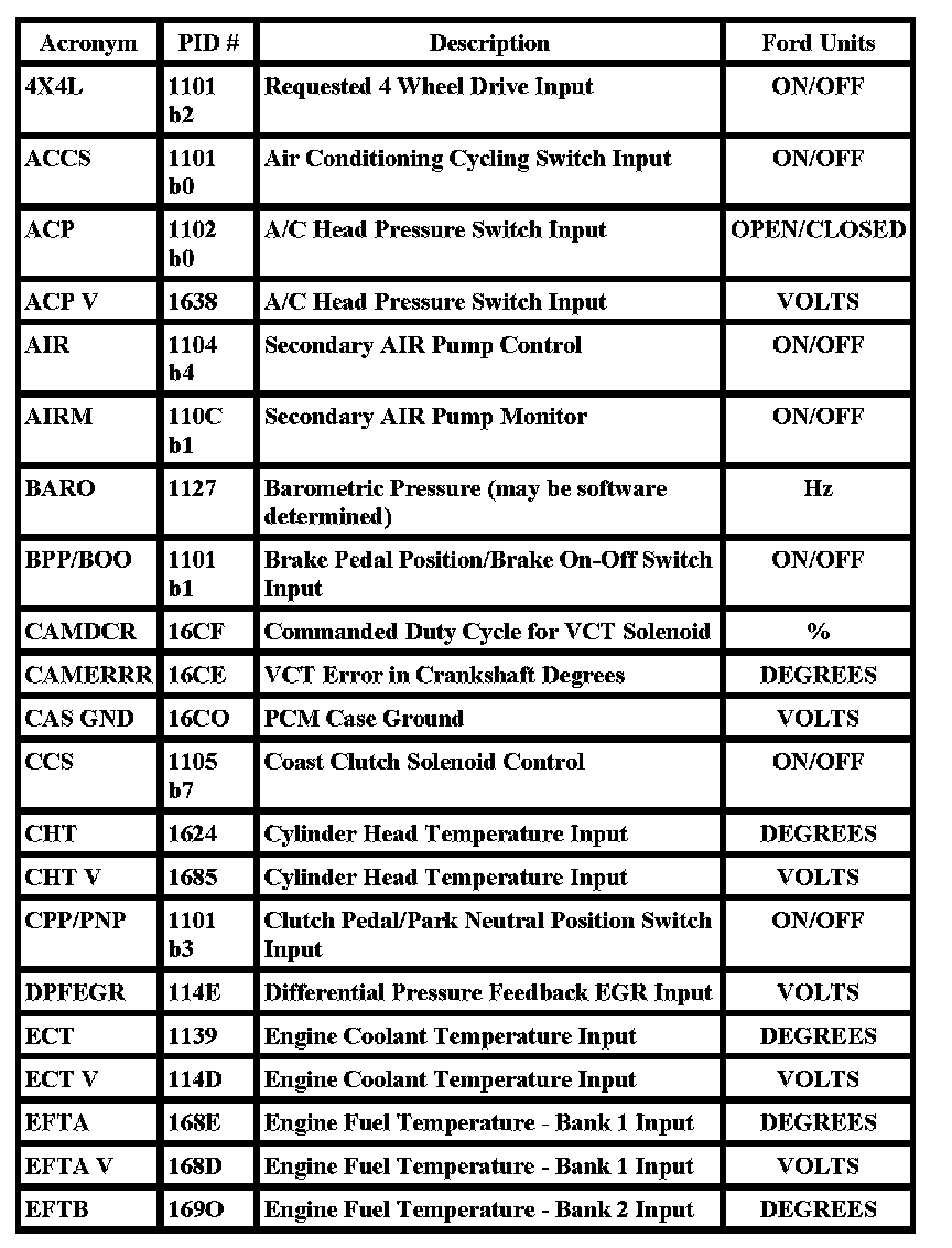 Ford PID List