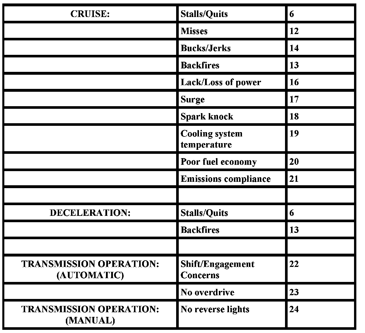 Home >> Ford >> 2000 >> Excursion 2WD V10-6.8L VIN S >> Repair and Diagnosis >> Powertrain Management >> Computers and Control Systems >> Testing and Inspection >> Scan Tool Testing and Procedures >> Normal Scan Data Values - Includes PIDs >> Reference Values >> Reference Value Symptom Chart