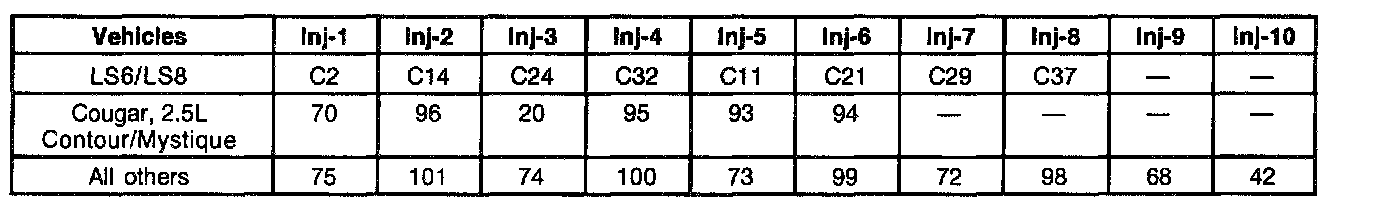 Injector PCM Connector Pin Numbers: