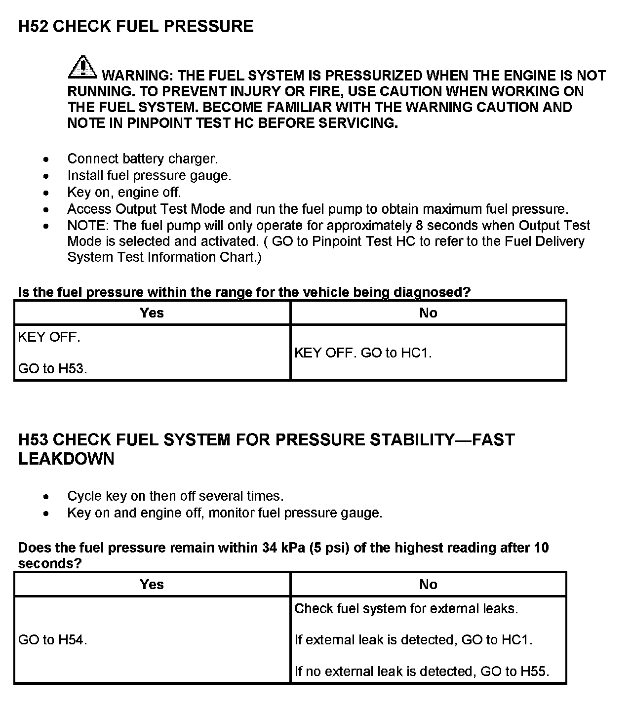Home >> Ford >> 2000 >> Excursion 4WD V10-6.8L VIN S >> Repair and Diagnosis >> Powertrain Management >> Computers and Control Systems >> Testing and Inspection >> Pinpoint Tests >> Test H: Fuel Control