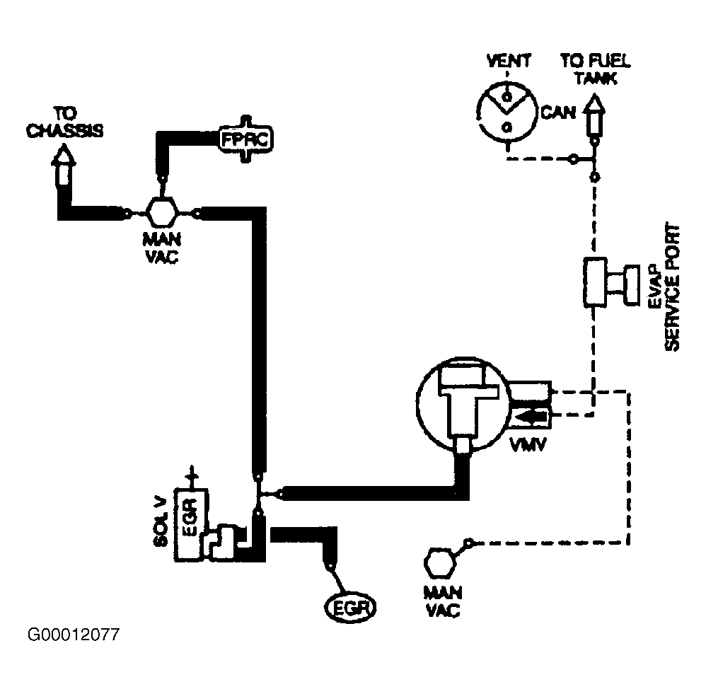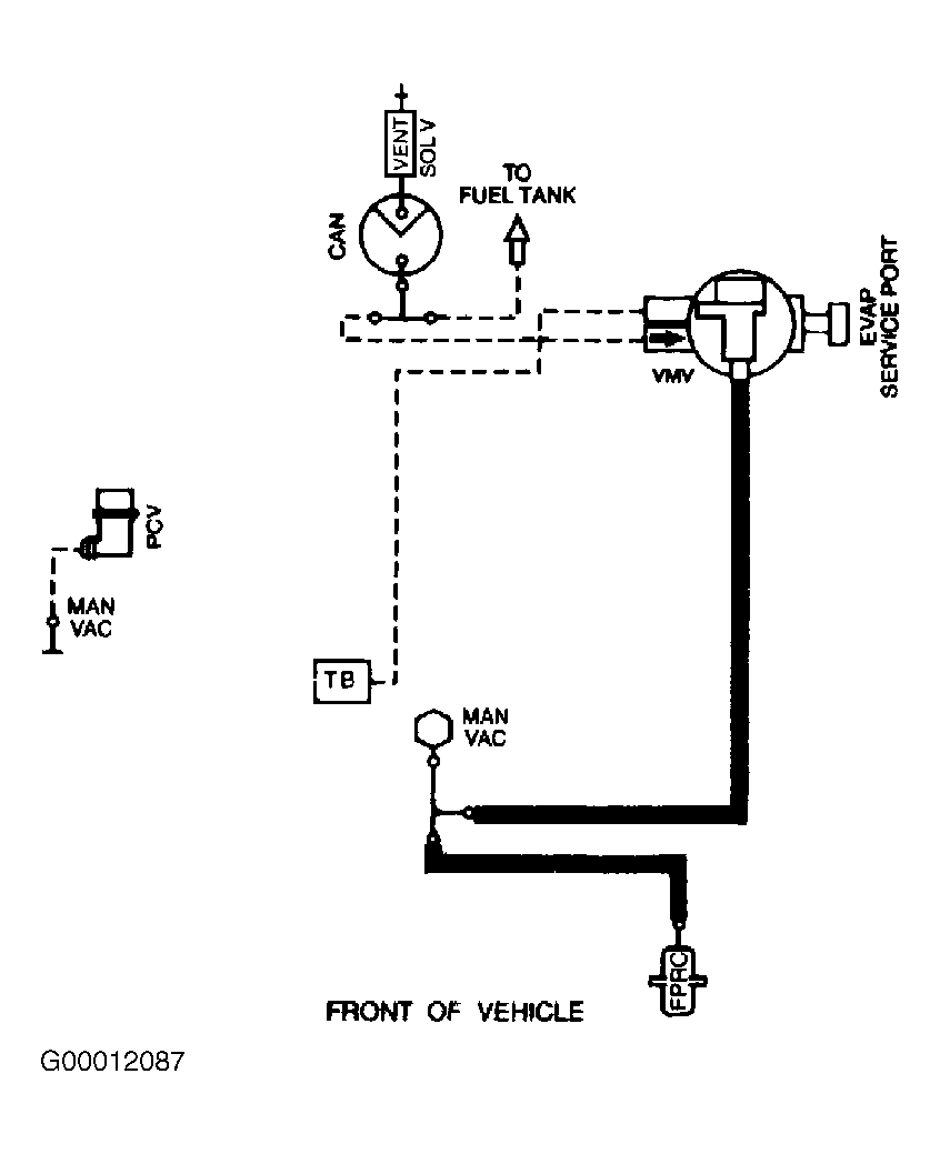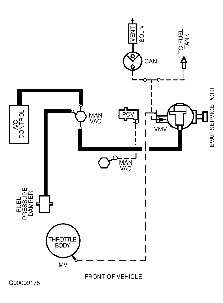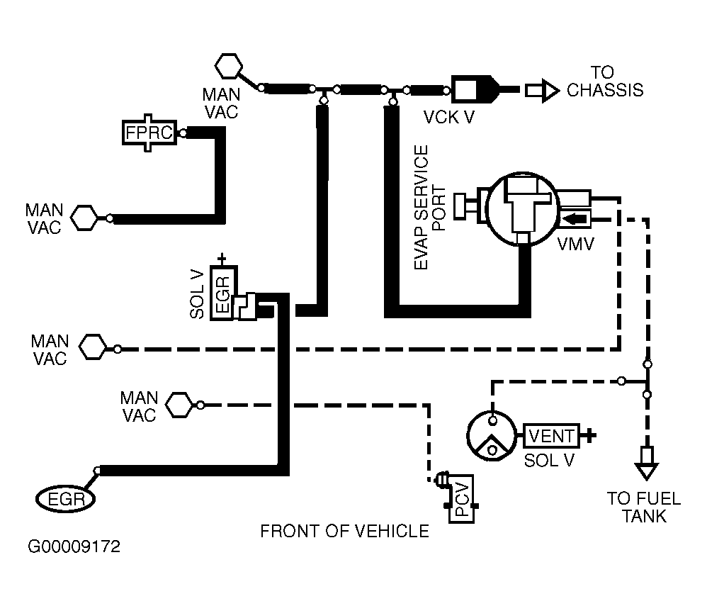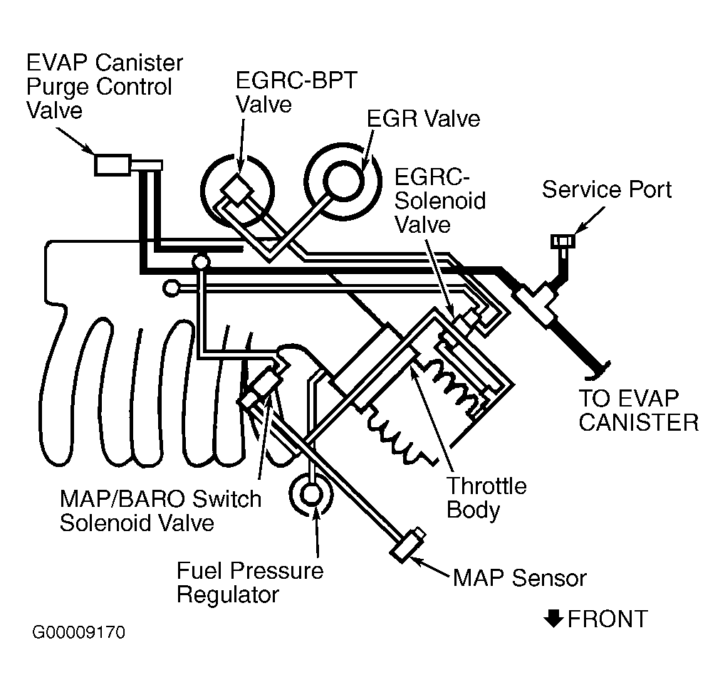 This article contains underhood schematics of vacuum hose routing. Use these vacuum diagrams during the visual inspection performed in the appropriate BASIC DIAGNOSTIC PROCEDURES article. This will assist in identifying improperly routed vacuum hoses, which may cause driveability and/or computer-indicated malfunctions. To properly identify calibration code, catch code must be identified. The catch code is the 4 alpha/numeric characters located in parenthesis at the end of the calibration code. Example; 9-EQA-BBD 9 (BAX3). The BAX3 is the catch code. The catch code tag is attached to the powertrain control module connector. See POWERTRAIN CONTROL MODULE LOCATION table. On some models, the catch code tag may also be located on the "A" pillar or inner fender.