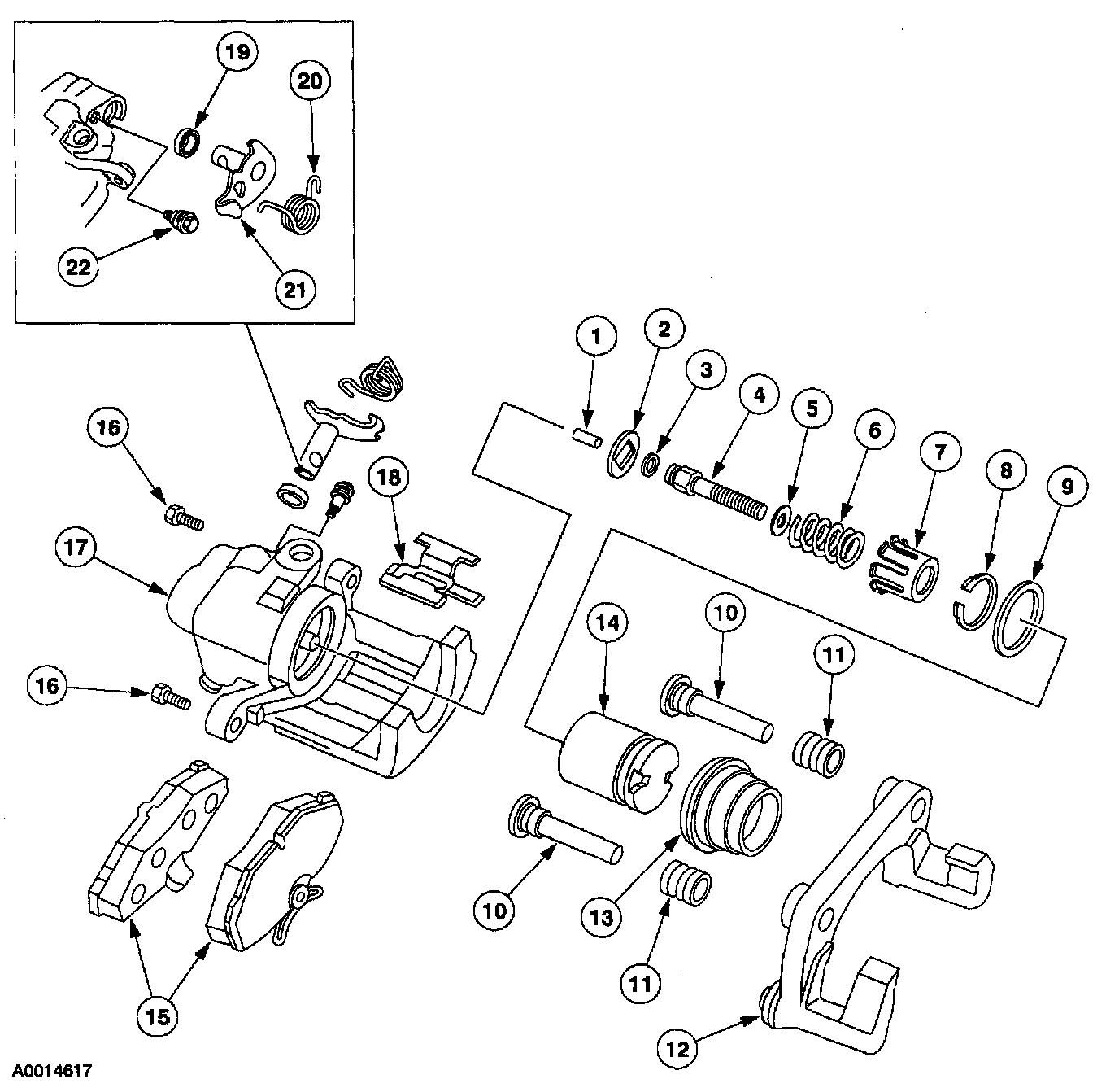 Rear Disc Brake Caliper - Disassembled View