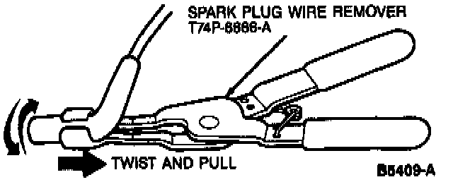 1. Using the special tool, with a twisting motion pull the spark plug wire off the spark plug.