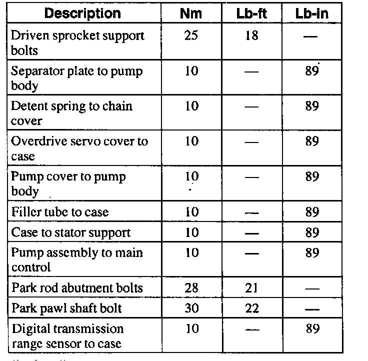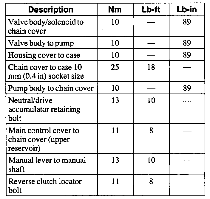 Torque Specifications