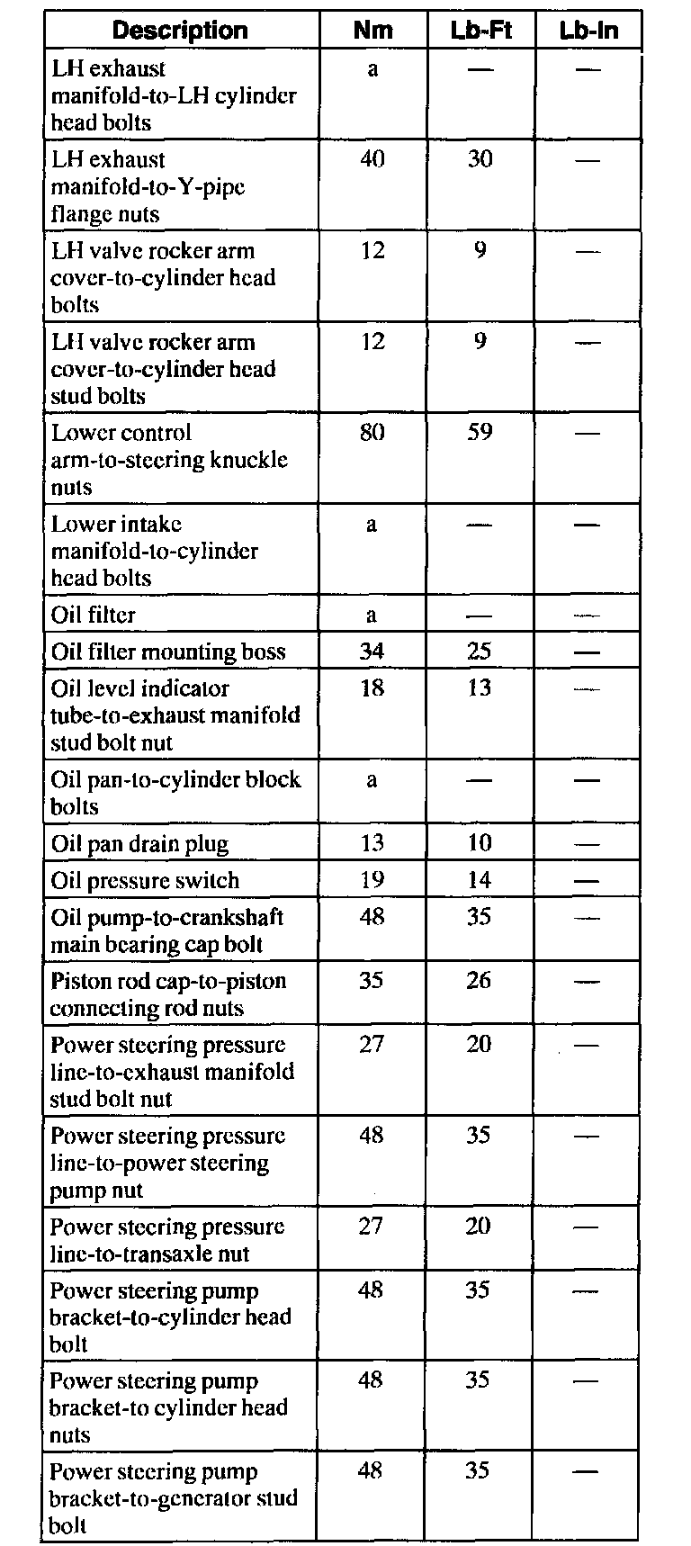 General Torque Specifications