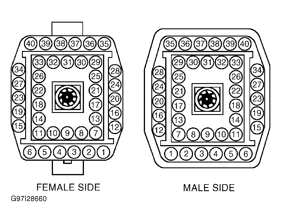 - Disconnect Black 40-pin harness connector C158. Harness connector C158 is located in left rear corner of engine compartment, on firewall. Inspect harness connector for loose, damaged or corroded terminals. If harness connector is okay, go to next step. If harness connector is damaged, repair as necessary.