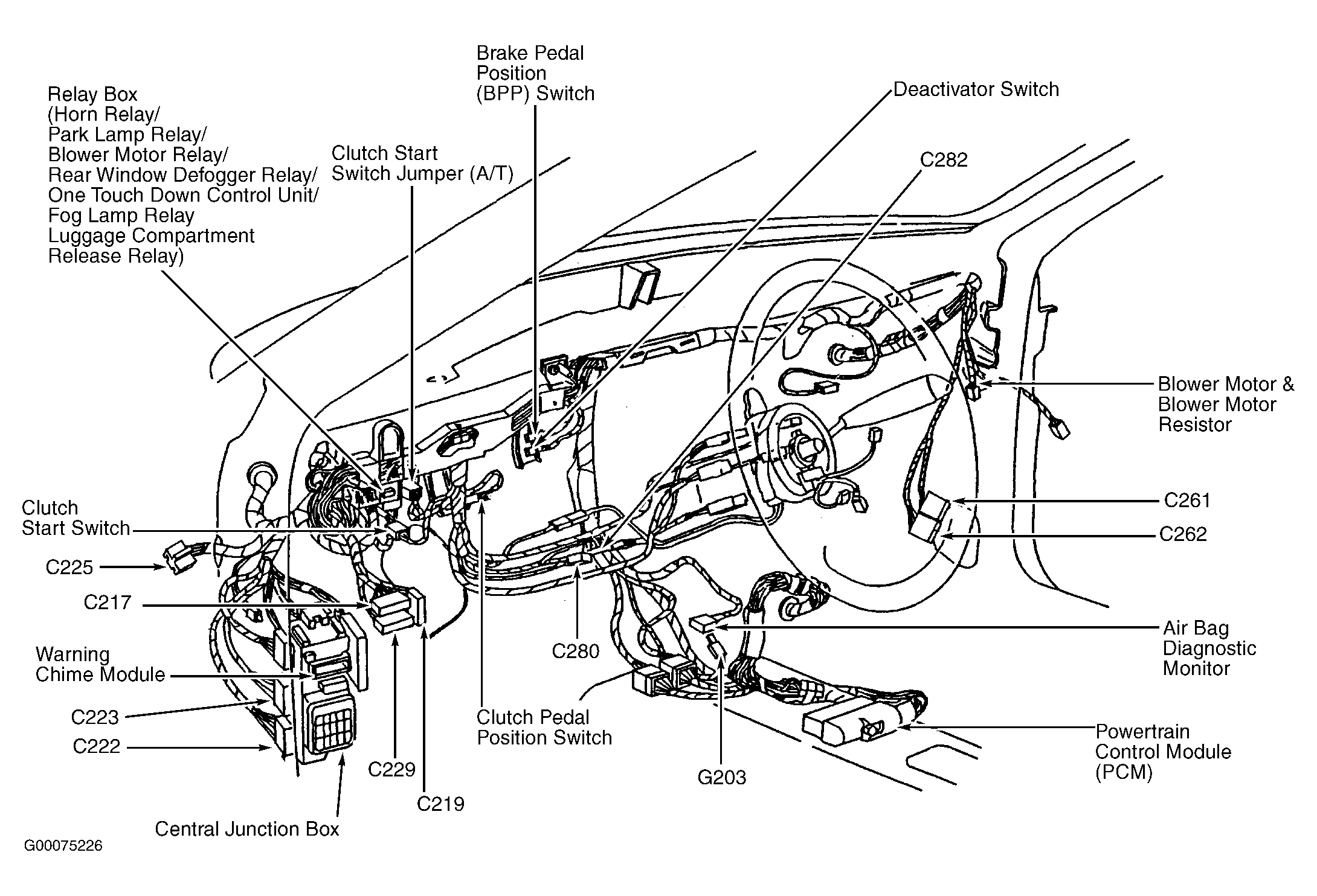 | Central Junction Box | Behind left side of dash. See Figure . |