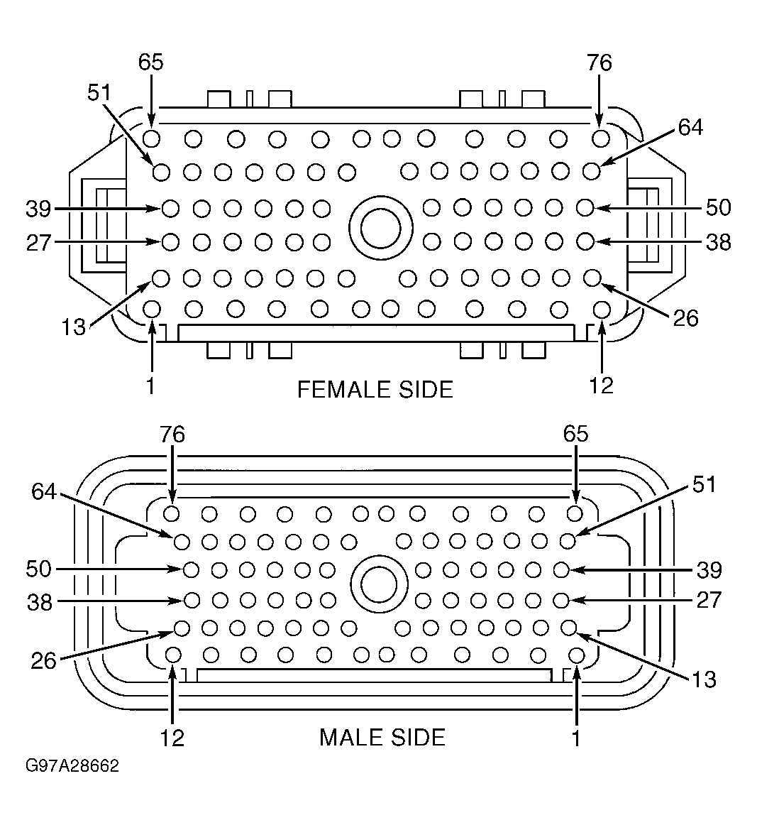 Fig 1: Identifying PCM Gray 104-Pin Harness Connector C175 Terminals