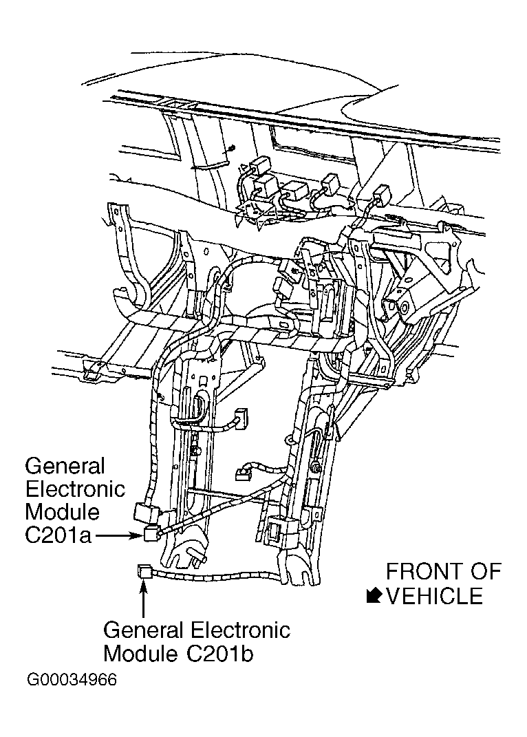 - Disconnect Generic Electronic Module (GEM) 22-pin harness connector C201a. GEM is located behind center of instrument panel. See Figure . Measure resistance of Light Blue/White wire between GEM harness connector C201a terminal No. 11 and DLC terminal No. 7. See Figure and Figure . If resistance is less than 5 ohms, go to next step. If resistance is 5 ohms or more, repair open in Light Blue/White wire. Repeat data link diagnostic test. See DATA LINK DIAGNOSTIC TEST under SELF-DIAGNOSTIC SYSTEM.