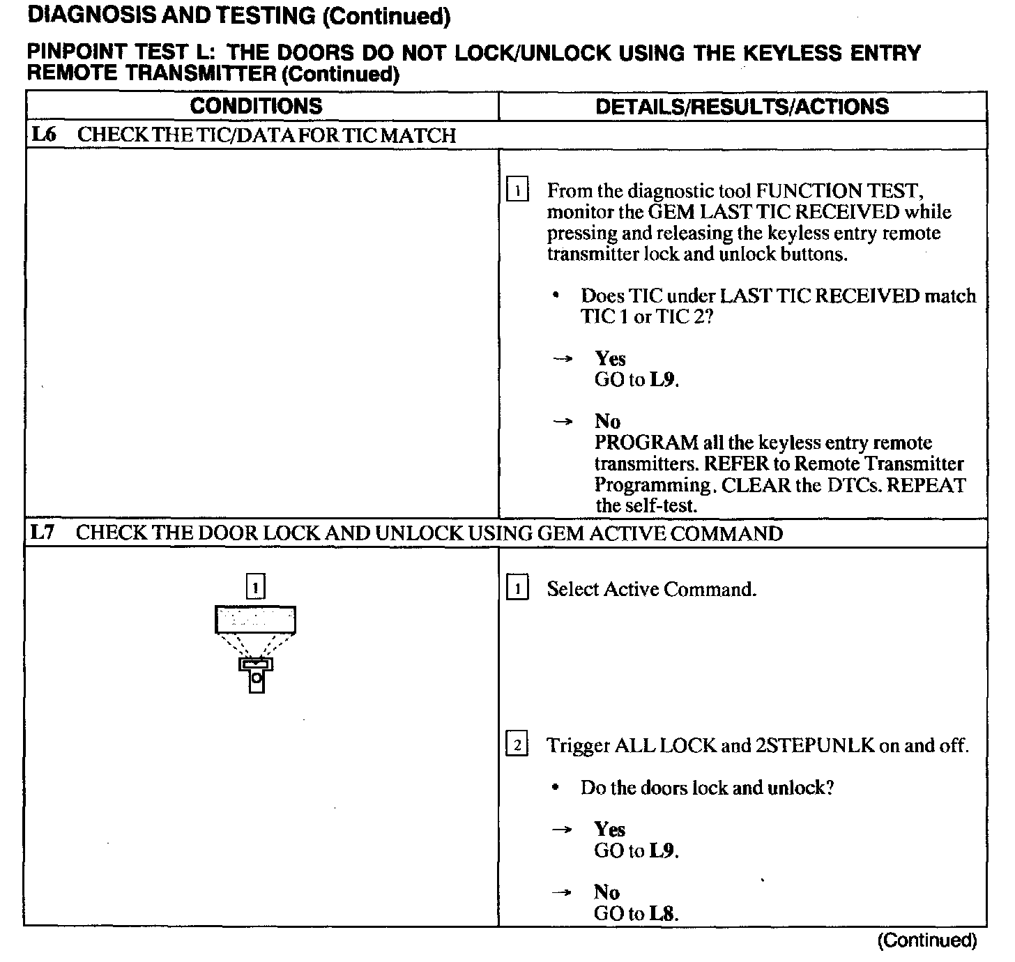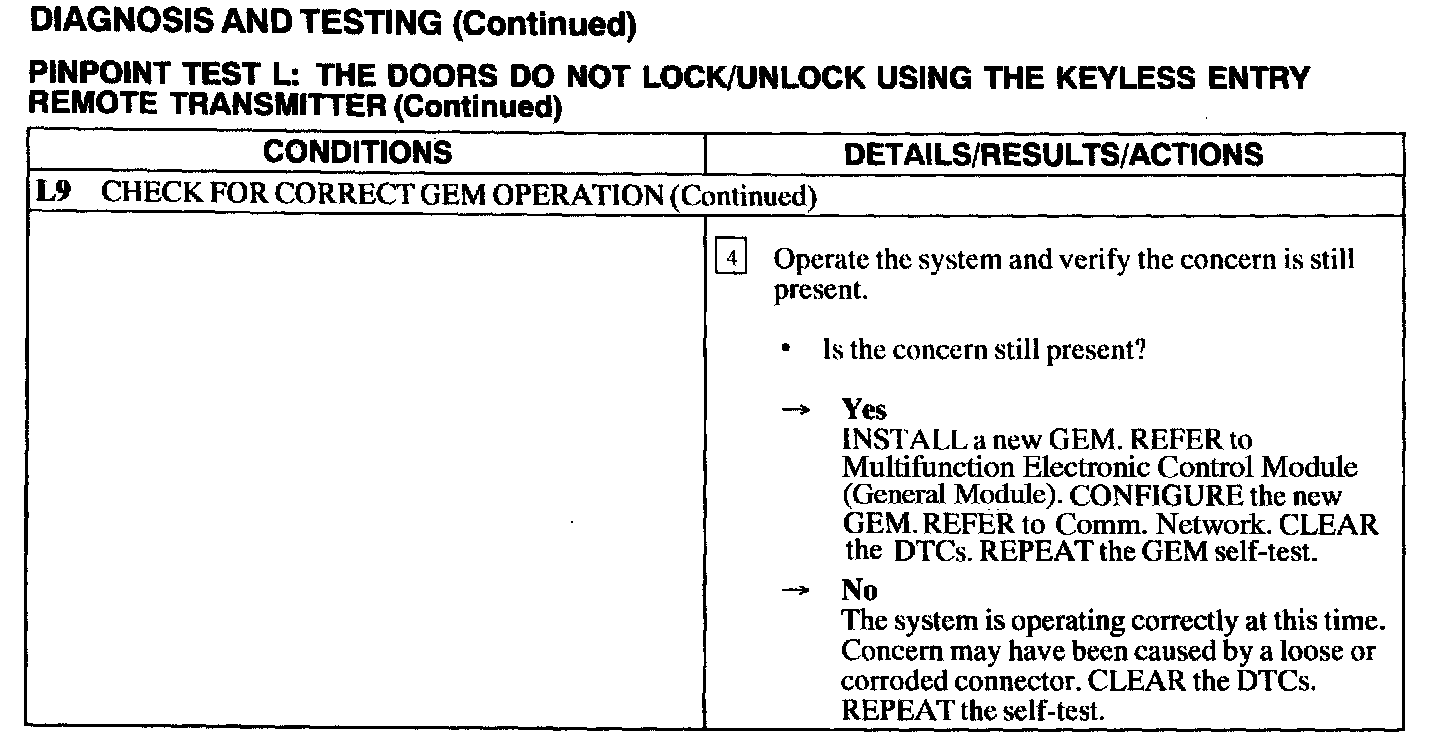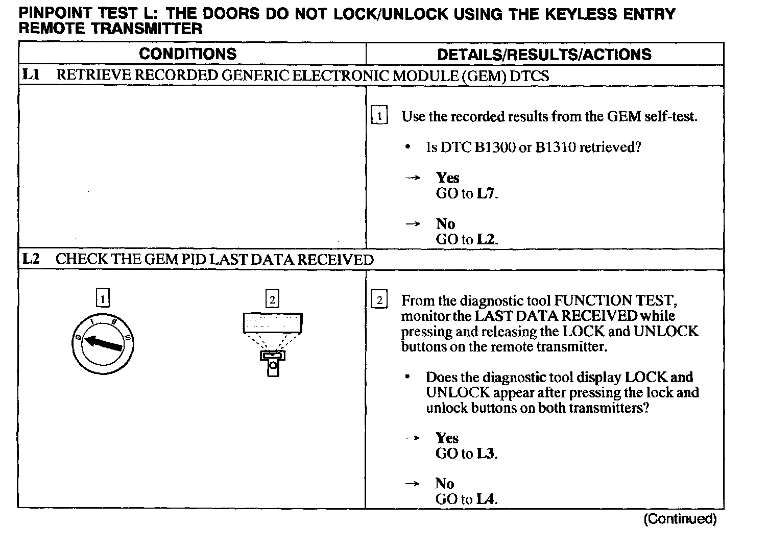 Test L: Doors Do Not Lock/Unlock Using the Keyless Entry Remote Transmitter