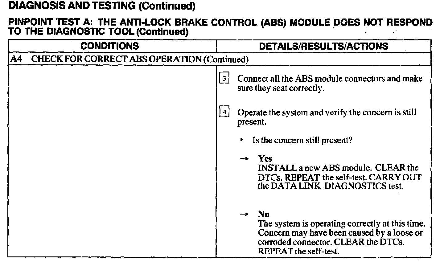 Test A: ABS Control Module Does Not Respond to the Scan Tool