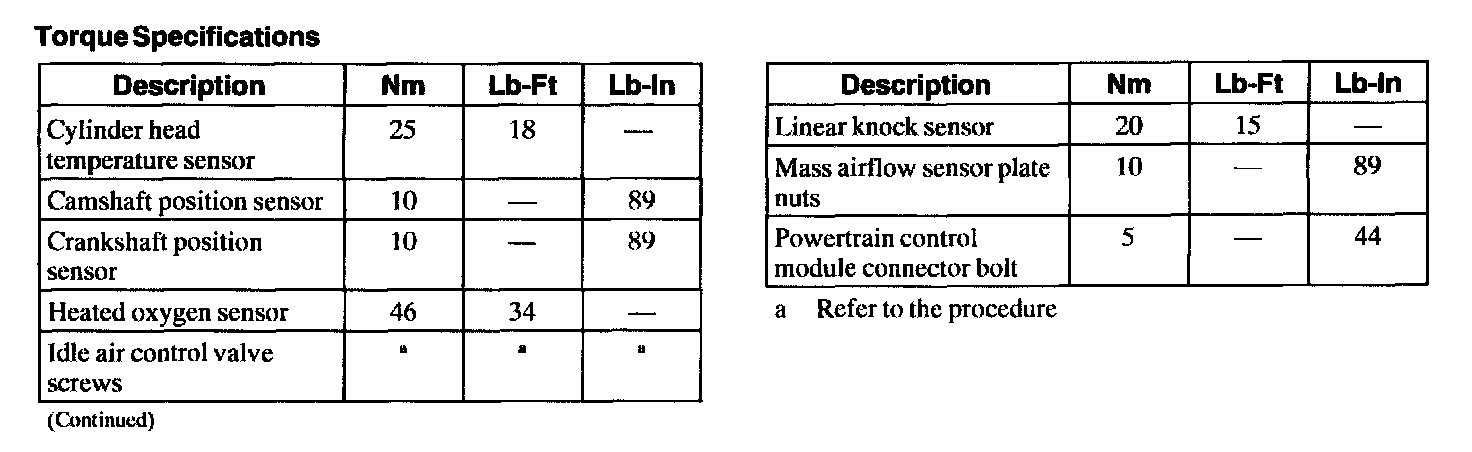 Torque Specifications:
