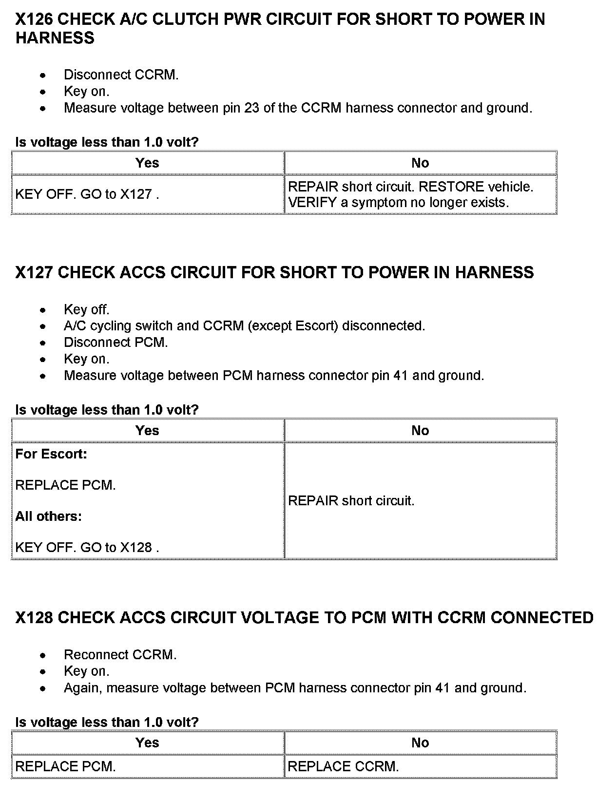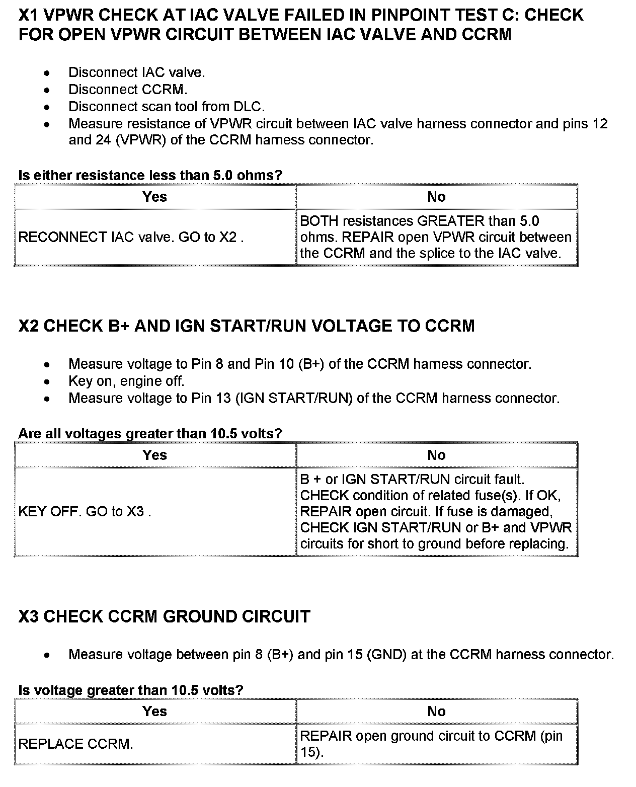 Home >> Ford >> 2001 >> Excursion 2WD V10-6.8L VIN S >> Repair and Diagnosis >> Powertrain Management >> Computers and Control Systems >> Testing and Inspection >> Pinpoint Tests >> Test X: Constant Control Relay Module (CCRM)