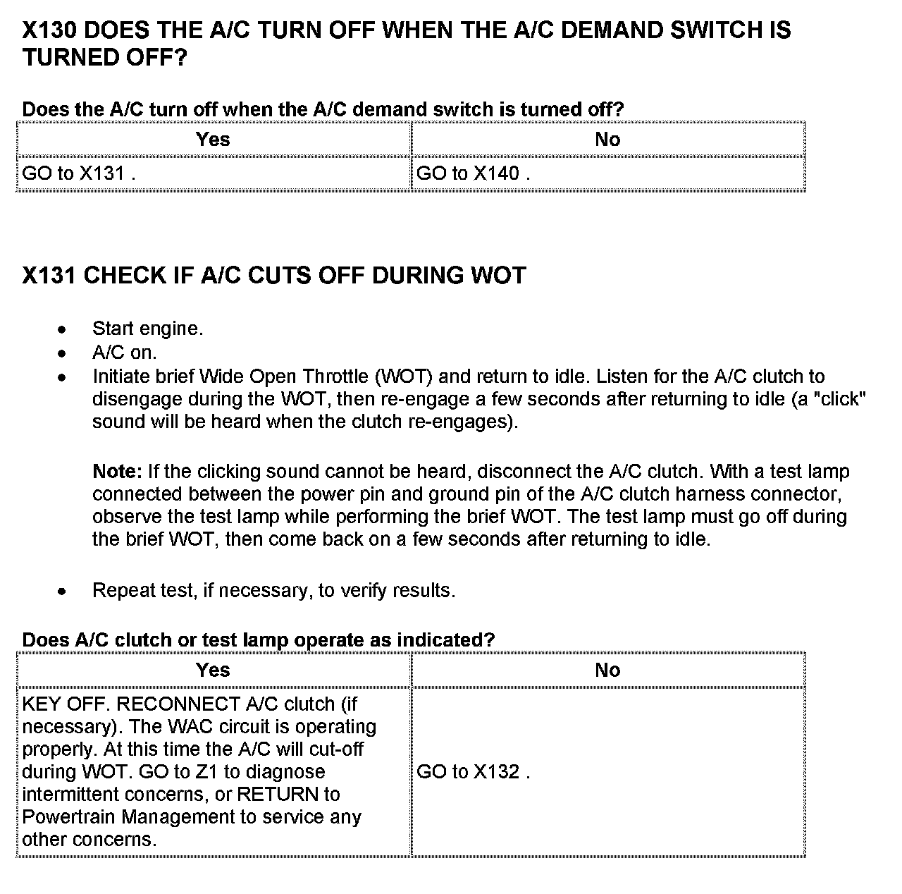Pinpoint Test X130 - X131: