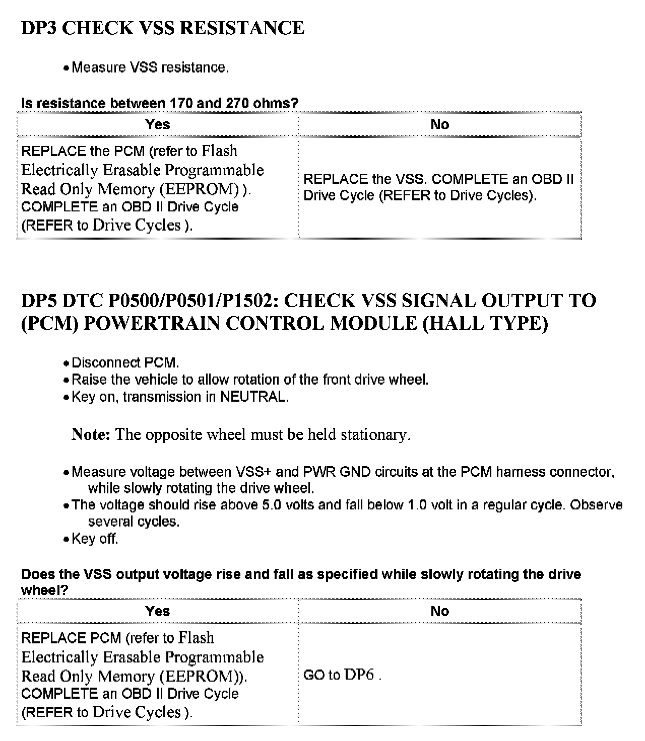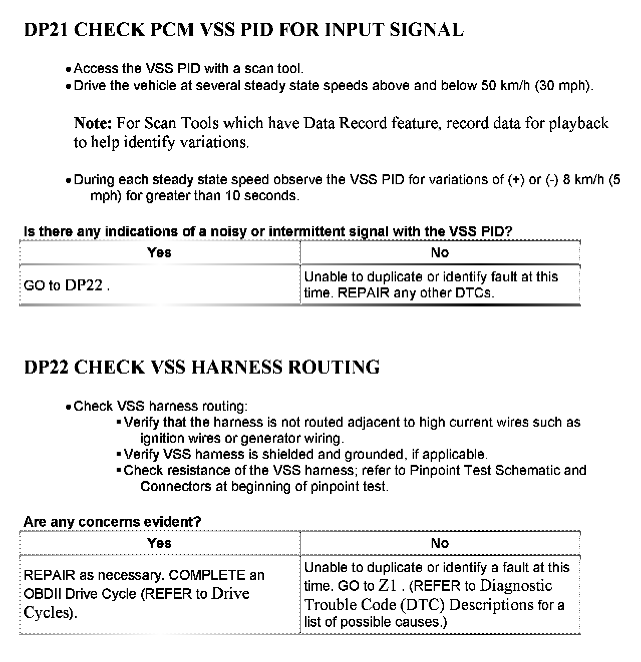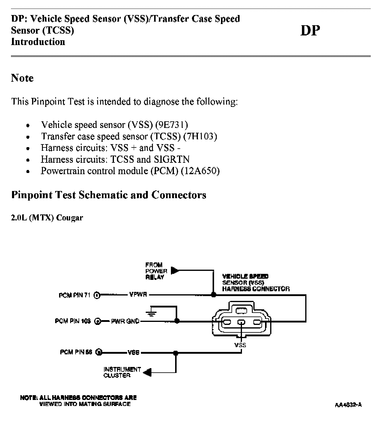 Tests DP: Vehicle Speed Sensor/Transfer Case Speed Sensor