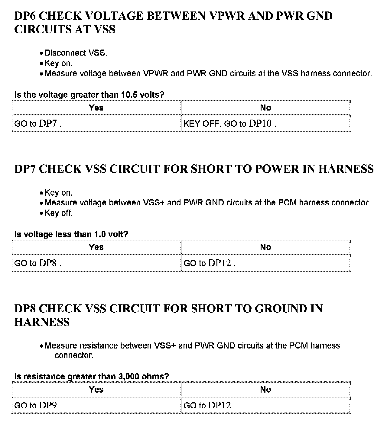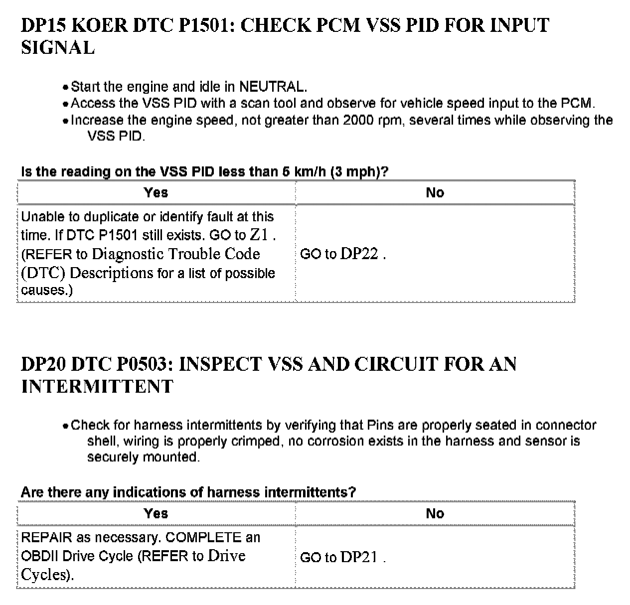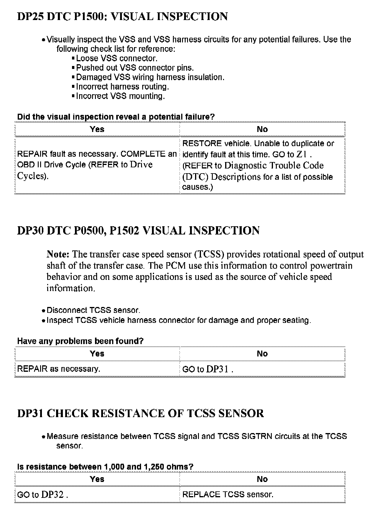 Tests DP: Vehicle Speed Sensor/Transfer Case Speed Sensor