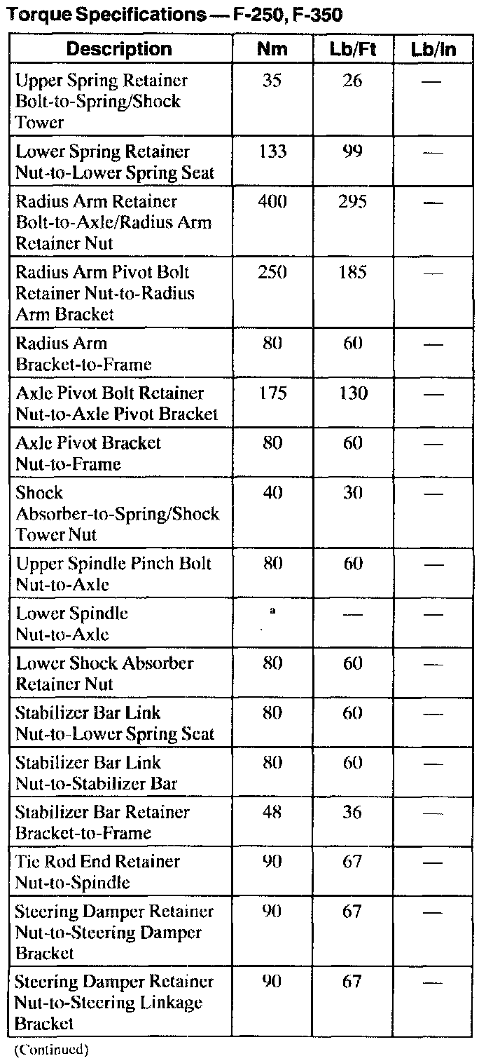 Torque SpecificationsTorque Specifications - F-250, F-350 (Part 1):