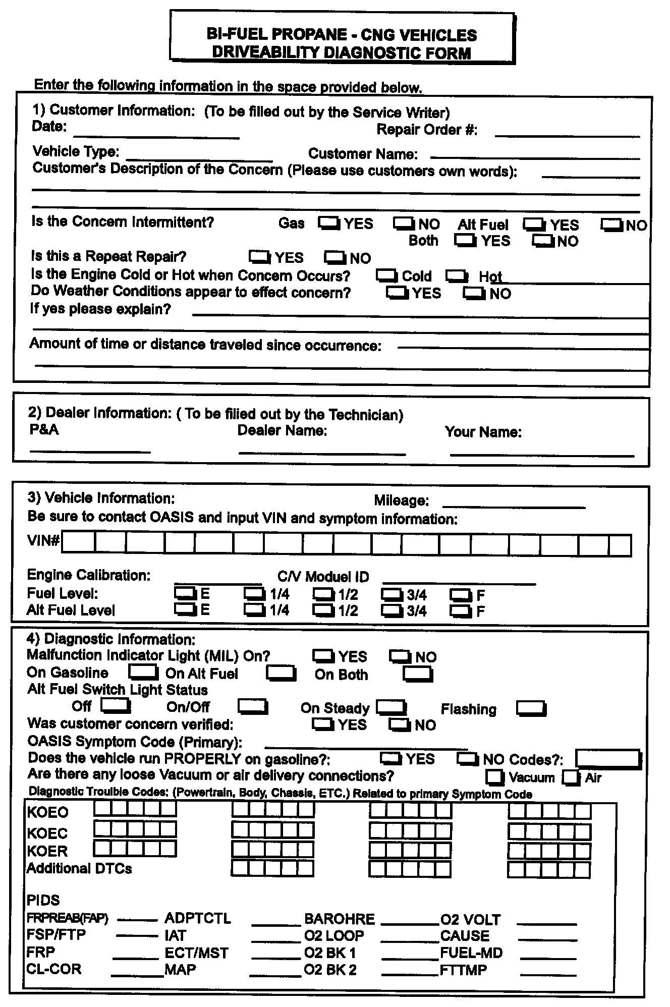 Bi-Fuel Driveability Diagnostic Form: