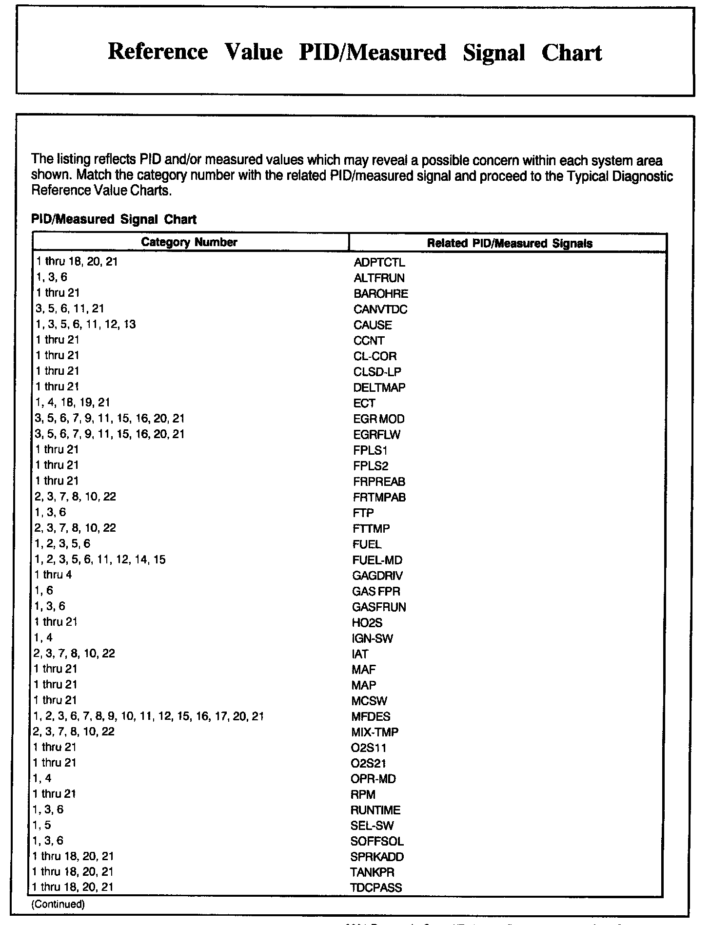 PID/Measured Signal Chart (Part 1 Of 2):