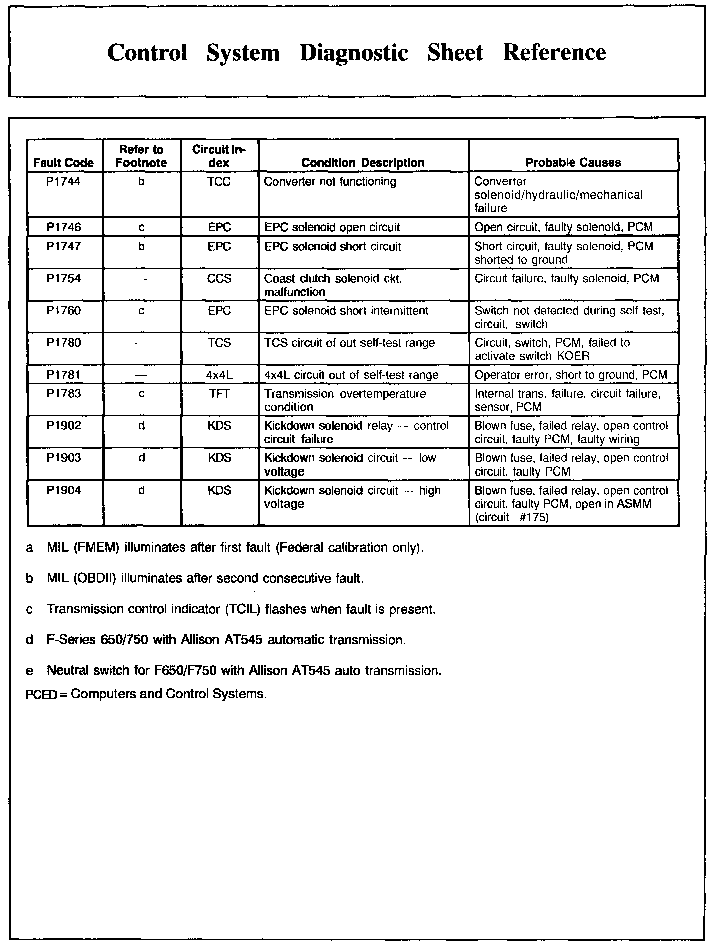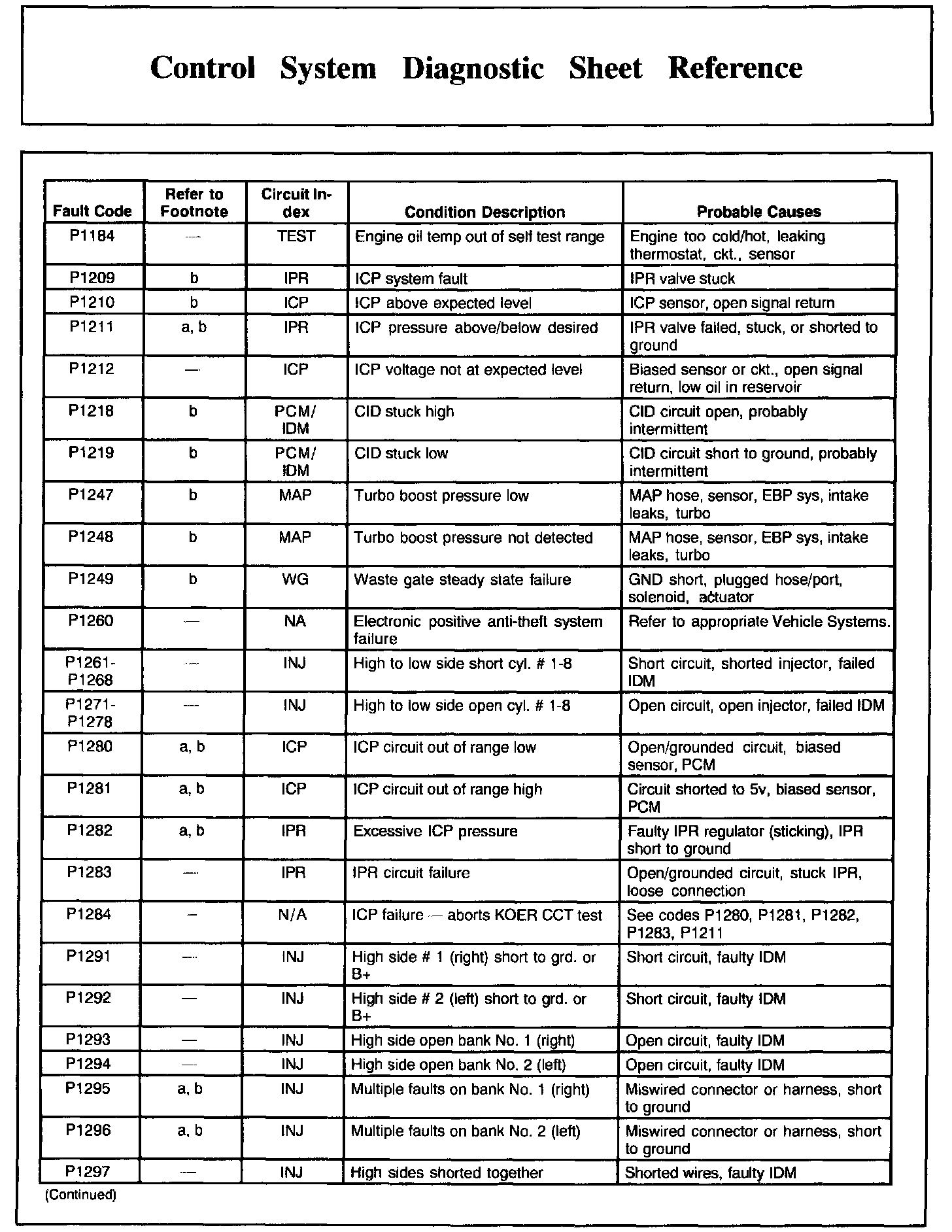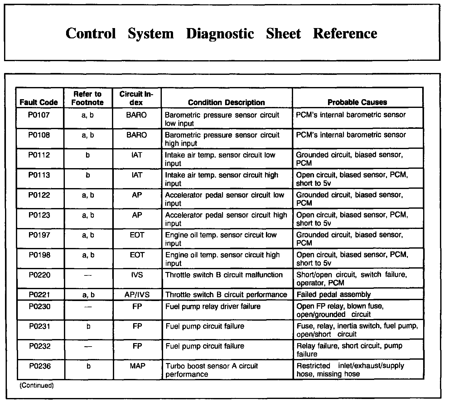 DTC Condition/Cause Chart, Part 1: