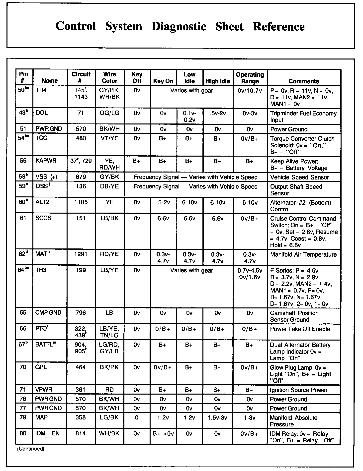 PCM Pin Descriptions And Expected Values, Part 4: