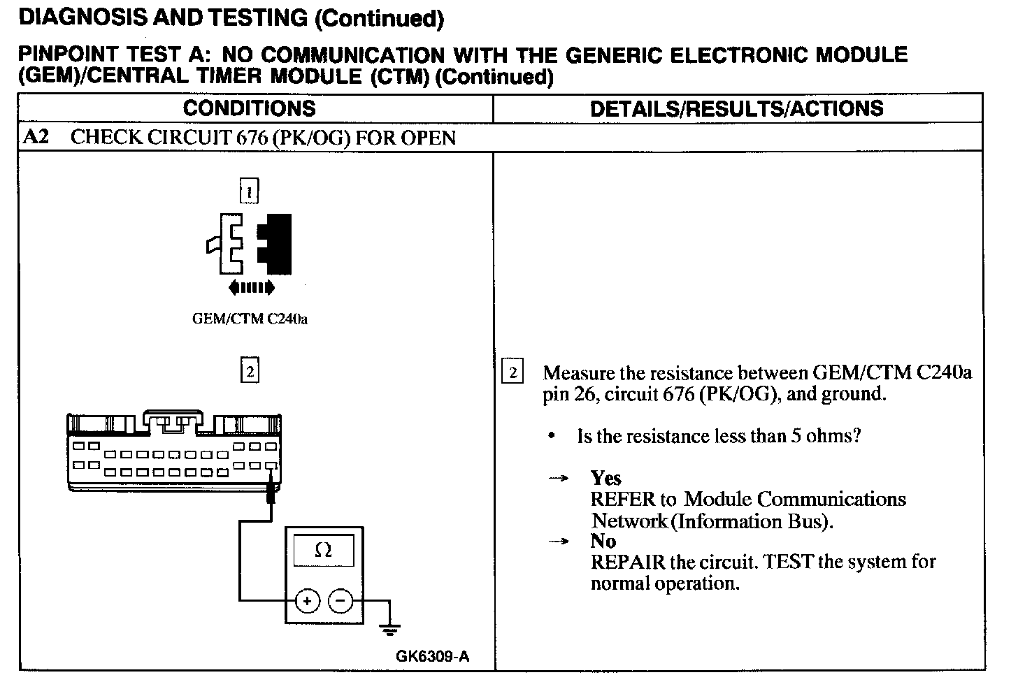 Test A: No Communication With the Generic Electronic Module/Central Timer Module