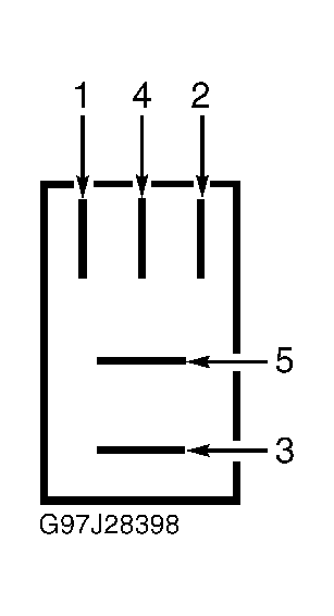 2. Using a jumper wire, apply battery voltage to relay terminal No. 1. Using a second jumper wire, ground relay terminal No. 2. Continuity should now exist between relay terminals No. 3 and 5. If continuity is not as specified, replace relay. If continuity is as specified, relay is okay at this time.