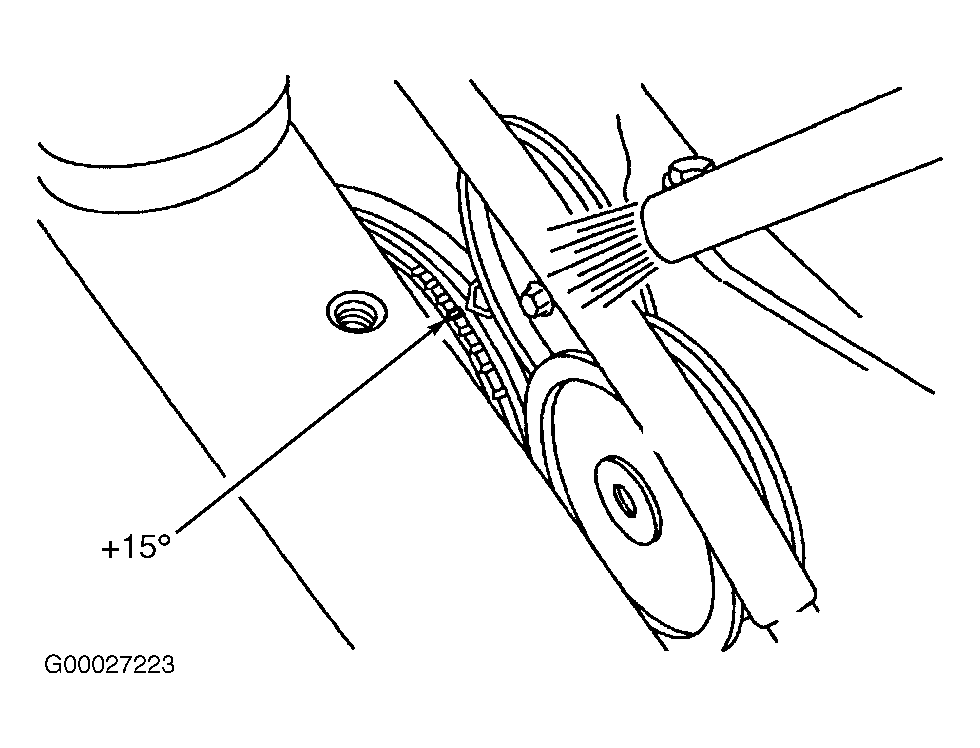 - Connect timing light to No. 1 spark plug wire. Check base ignition timing. See Fig 1. See IGNITION TIMING table.
