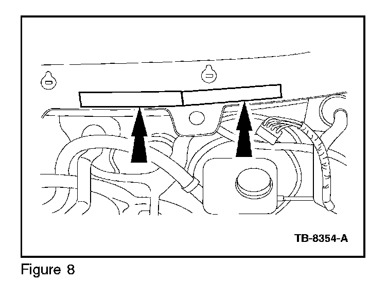 11. Place two (2) of the cut pieces of the PVC sofi foam adhesive stripes on the metal body surface over the transaxle area. The two ends need to touch, do not allow any gap between the two ends. (Figure 8)