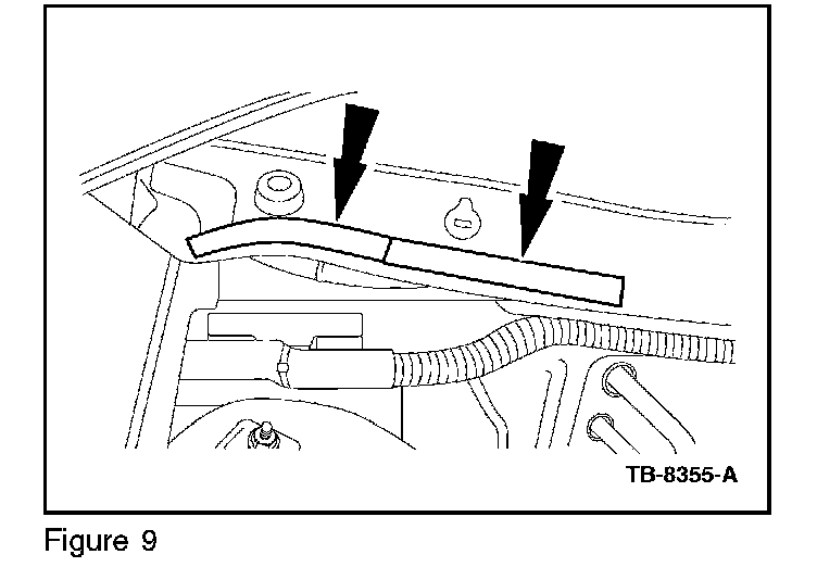 14. Remove and discard the two rubber plugs on the bottom of the cowl sheet metal. (Figure 11)