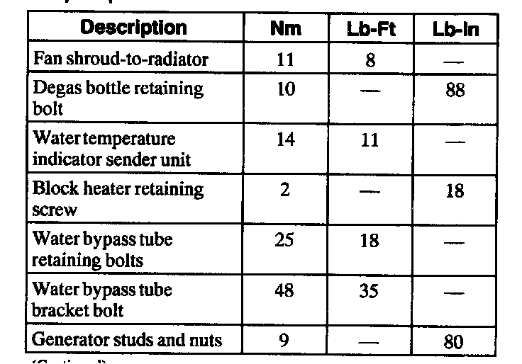 Torque Specifications