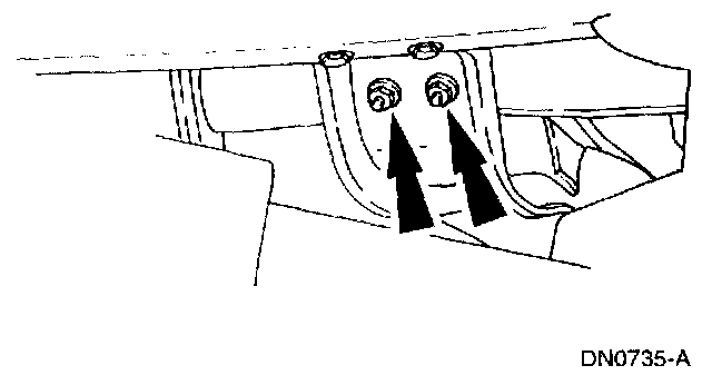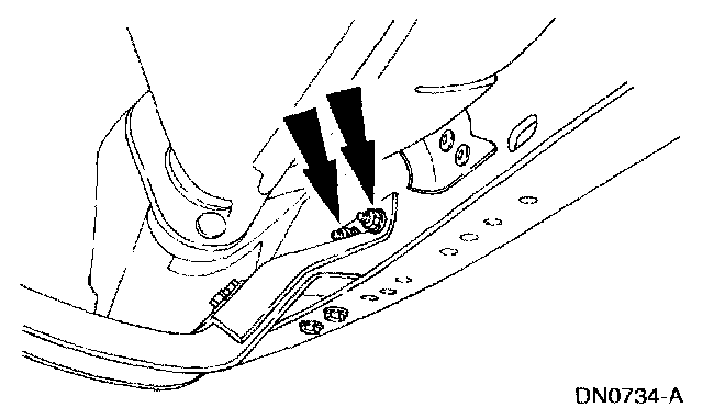 2. Loosely install the transmission support crossmember nuts and bolts (RH side).