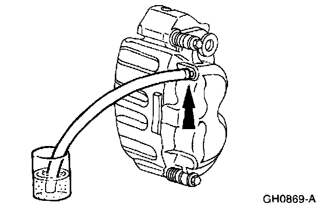 CAUTION: Do not allow the brake master cylinder reservoir to run dry during the bleeding operation. Keep the brake master cylinder reservoir filled with the specified brake fluid. Never reuse the brake fluid that has been drained from the hydraulic system.