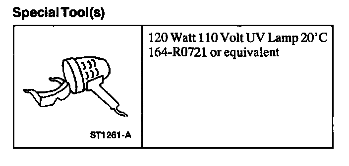 Home >> Ford >> 2002 >> Excursion 2WD V10-6.8L >> Repair and Diagnosis >> Maintenance >> Fluids >> Refrigerant >> Testing and Inspection >> Fluorescent Dye Leak Detection