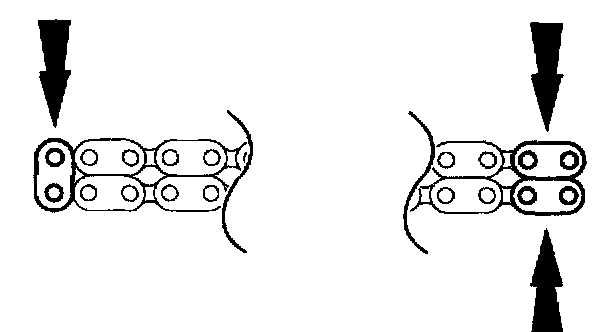 If copper links are not visible, mark two links on one end and one link on the other end, and use as timing marks.