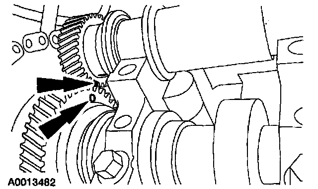 CAUTION: Since the engine is not free-wheeling, if the crankshaft or the camshafts are moved in any manner during removal and installation the crankshaft and camshaft must be resynchronized.