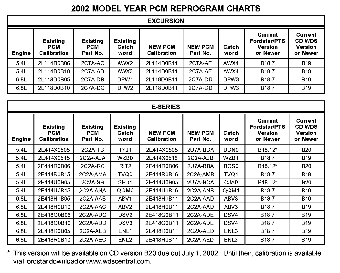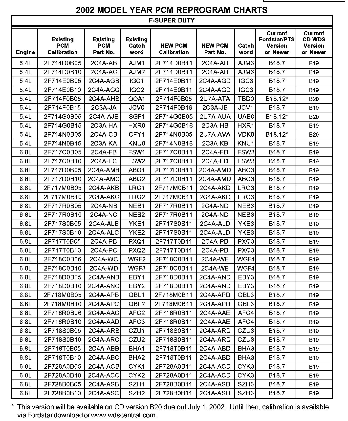 SERVICE PROCEDURE1. NOTE: If you determine that the existing PCM calibration is already at the new level (or later) according to the chart, no reprogramming is necessary.
